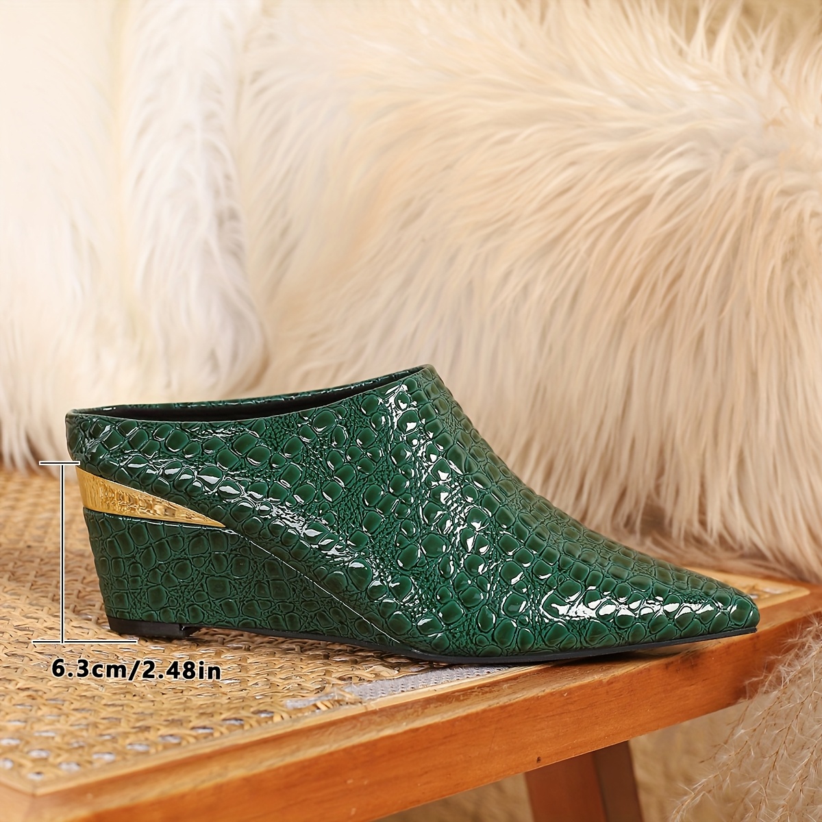 1 Pair Of Wedge Sandals, Stone Pattern, Blue And Green Wedge Shoes, Large Size Simple, One Foot Pedal, Pointed Toe Deep Mouth, Four Seasons Shoes, European And American Style, Goddess Shoes, Versatile Large Size Shoes, Wedge