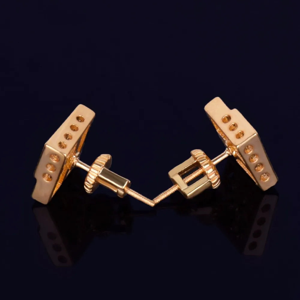 10MM Square Stud Earring Gold Color Charm Screw Back Women Men's Fashion Earrings Hip Hop Jewelry