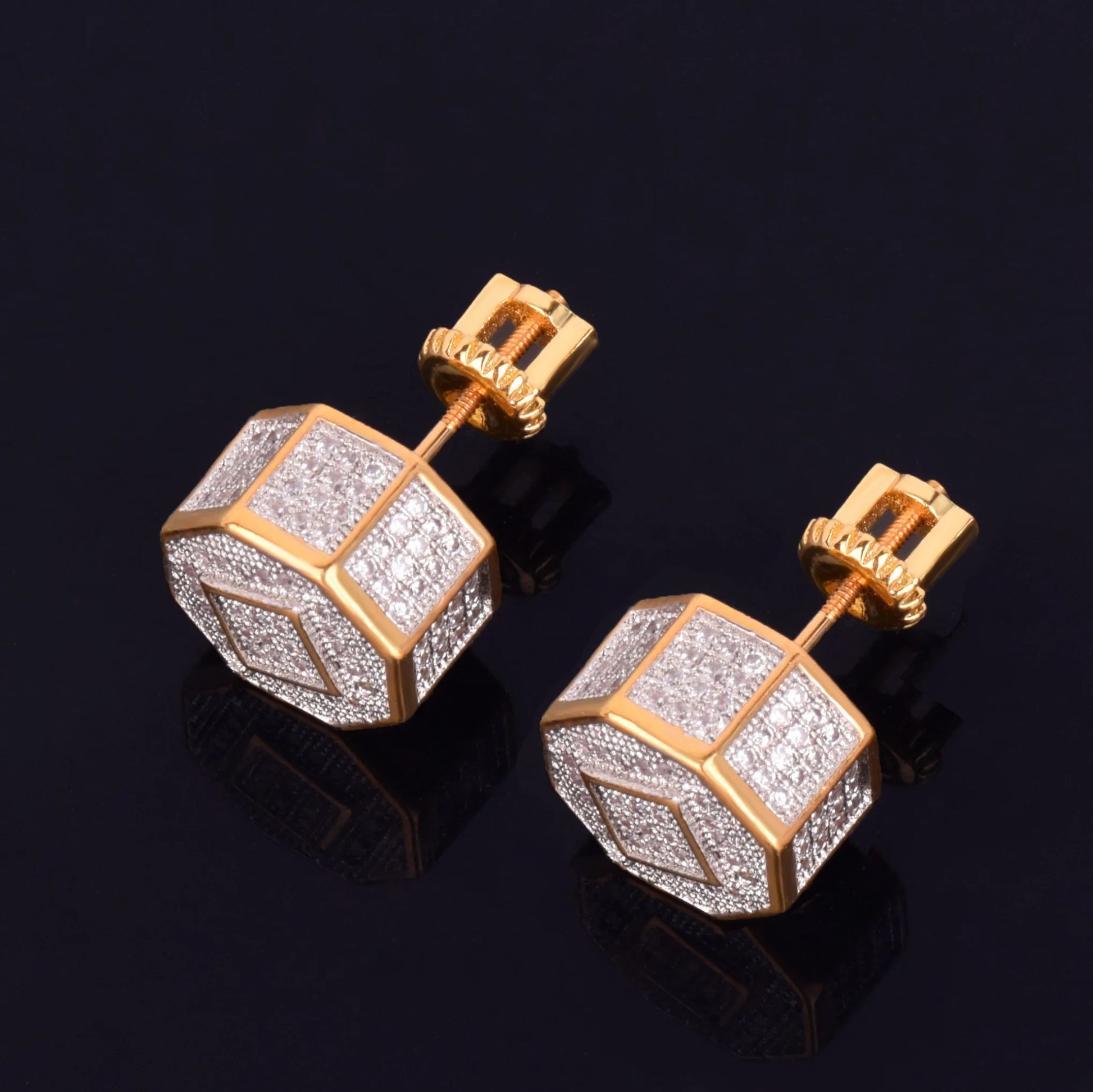 11MM Round Men Women Stud Earring Gold Color Iced Cubic Zircon Screw Back Earrings Hip Hop Jewelry