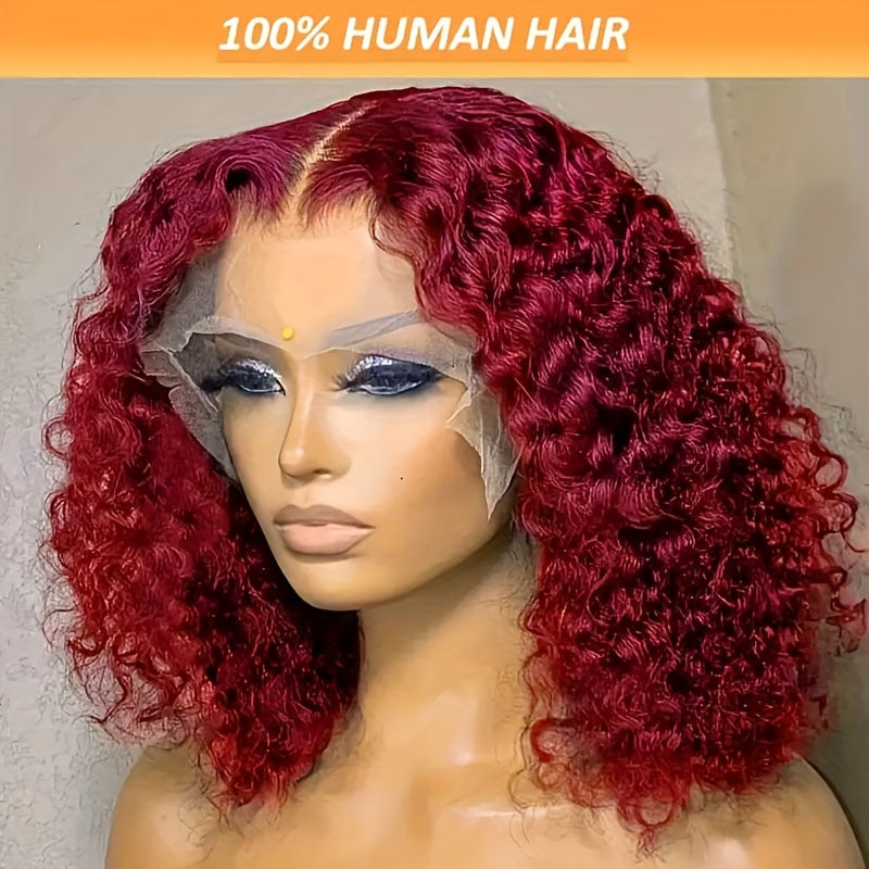 13x4 Burgundy Deep Wave Lace Front Wig - 250% Density, 100% Brazilian Virgin Human Hair, Pre-Plucked with Baby Hair, Glueless Design for Women, Wet and Wavy Look, Bye Bye Knots, Natural Red Color
