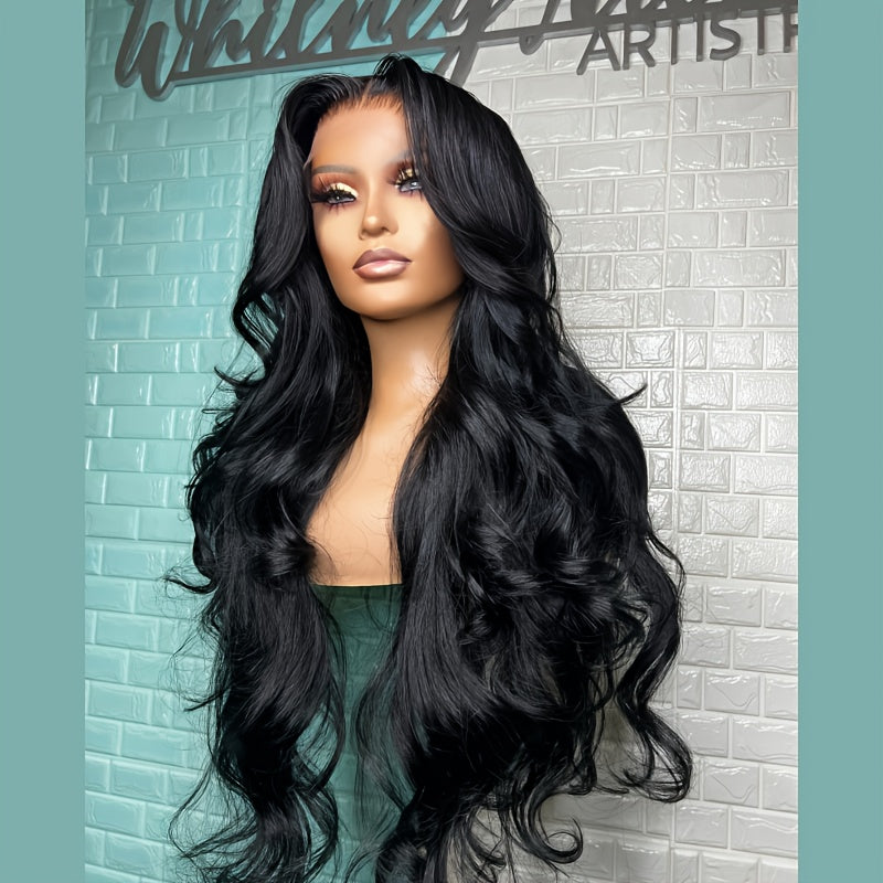 13x4 HD Lace Front Wig - Glueless Pre Plucked Lace Wig with 180% Density, Heat Resistant Synthetic Hair, Natural Black Body Wave Curly Wig for Women, No Glue Needed, Everyday & Special Events, Event Hairpiece, Elegant Hairsty