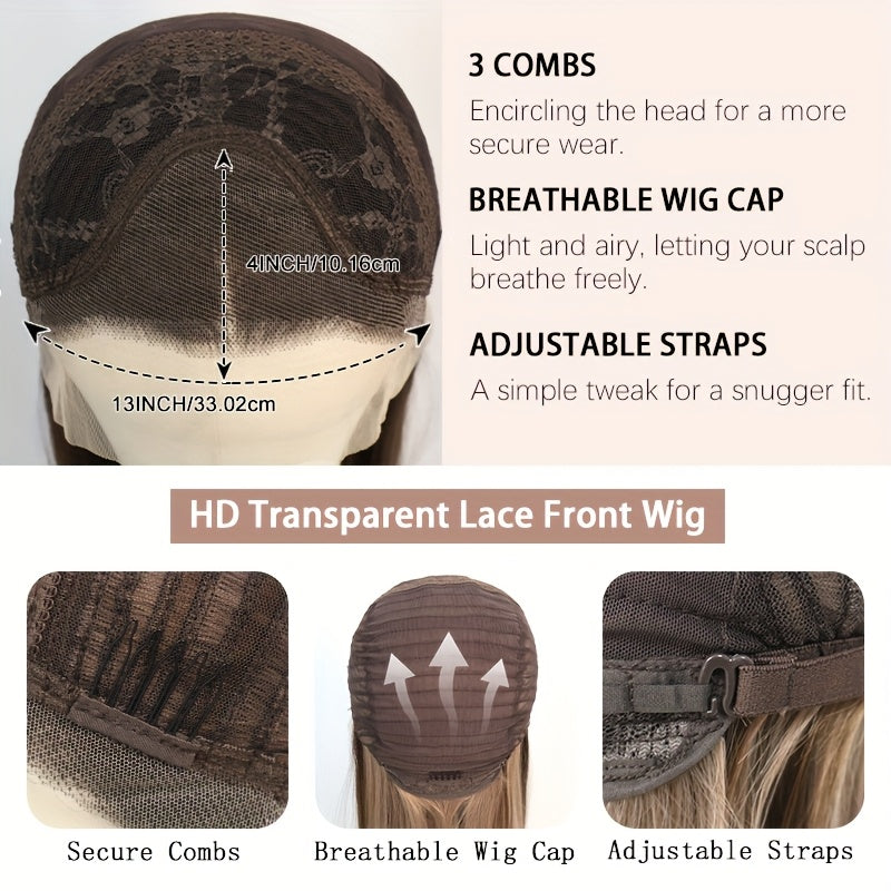 13x4 HD Lace Front Wig with Blonde & Red Highlights - Body Wave Synthetic Hair 180% Density Pre-Plucked Glueless 28 Inch Natural Look for Women All Ethnicities, Versatile Hairpiece | Elegant Hairpiece