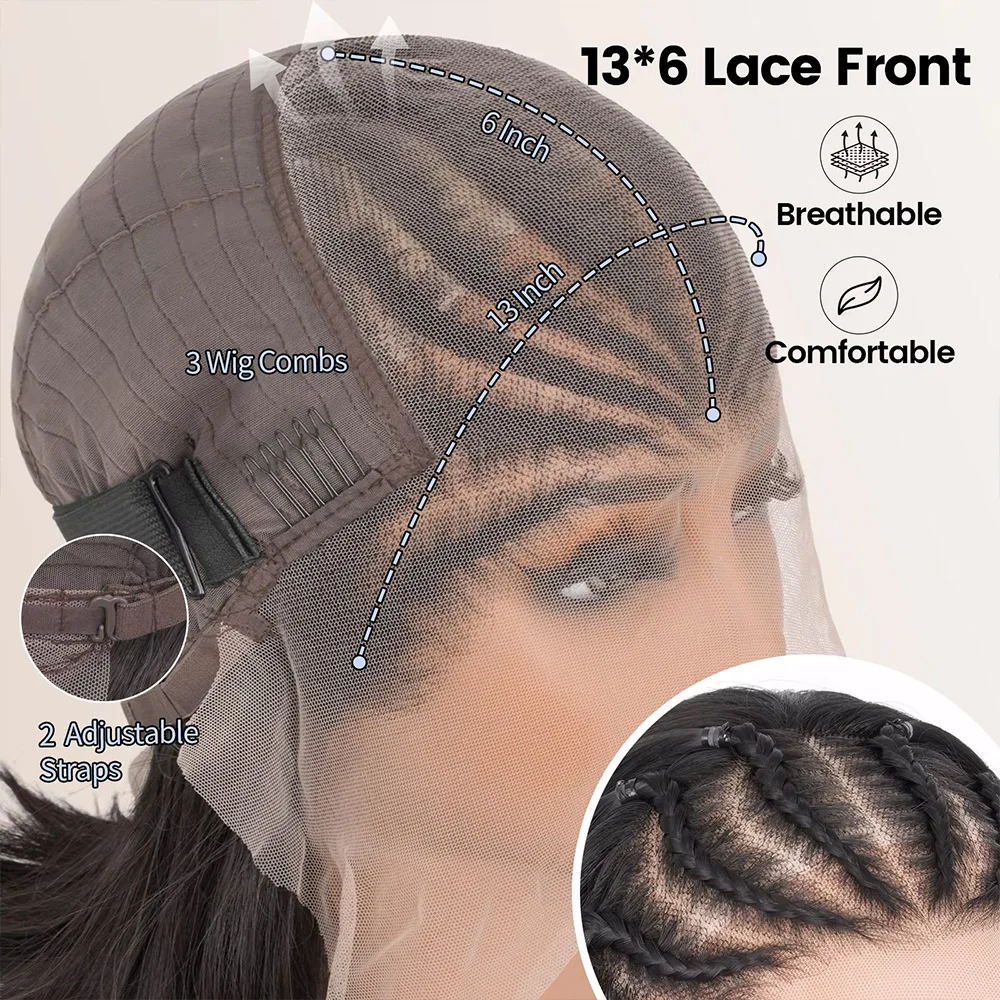 13X6 Lace Front Braided Wigs for Black Women Synthetic Short Straight Bob Wigs with Braid 12 Inch Short Cornrow Braided Wigs