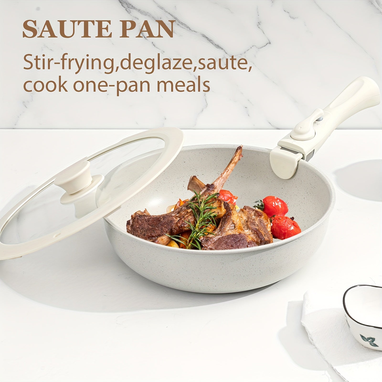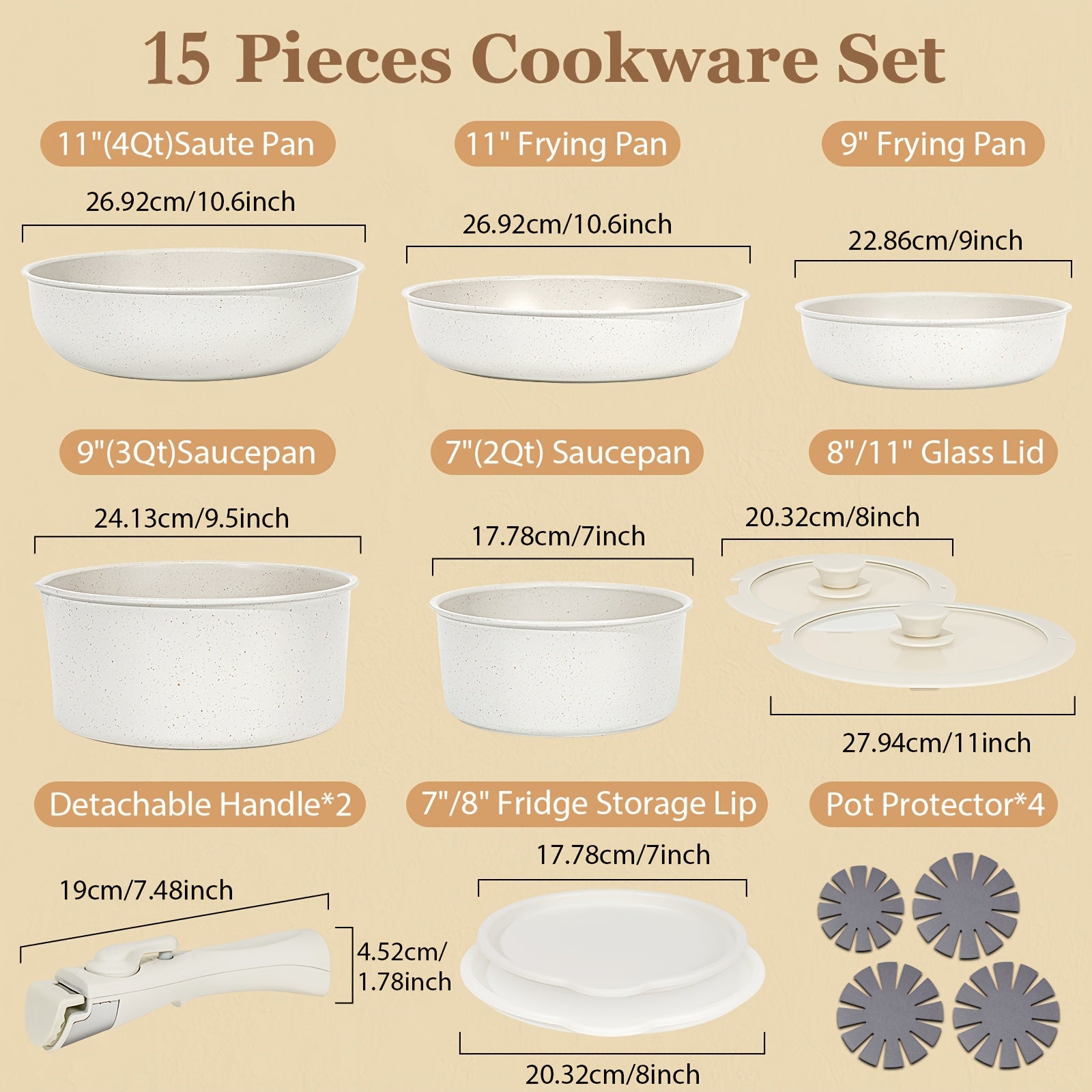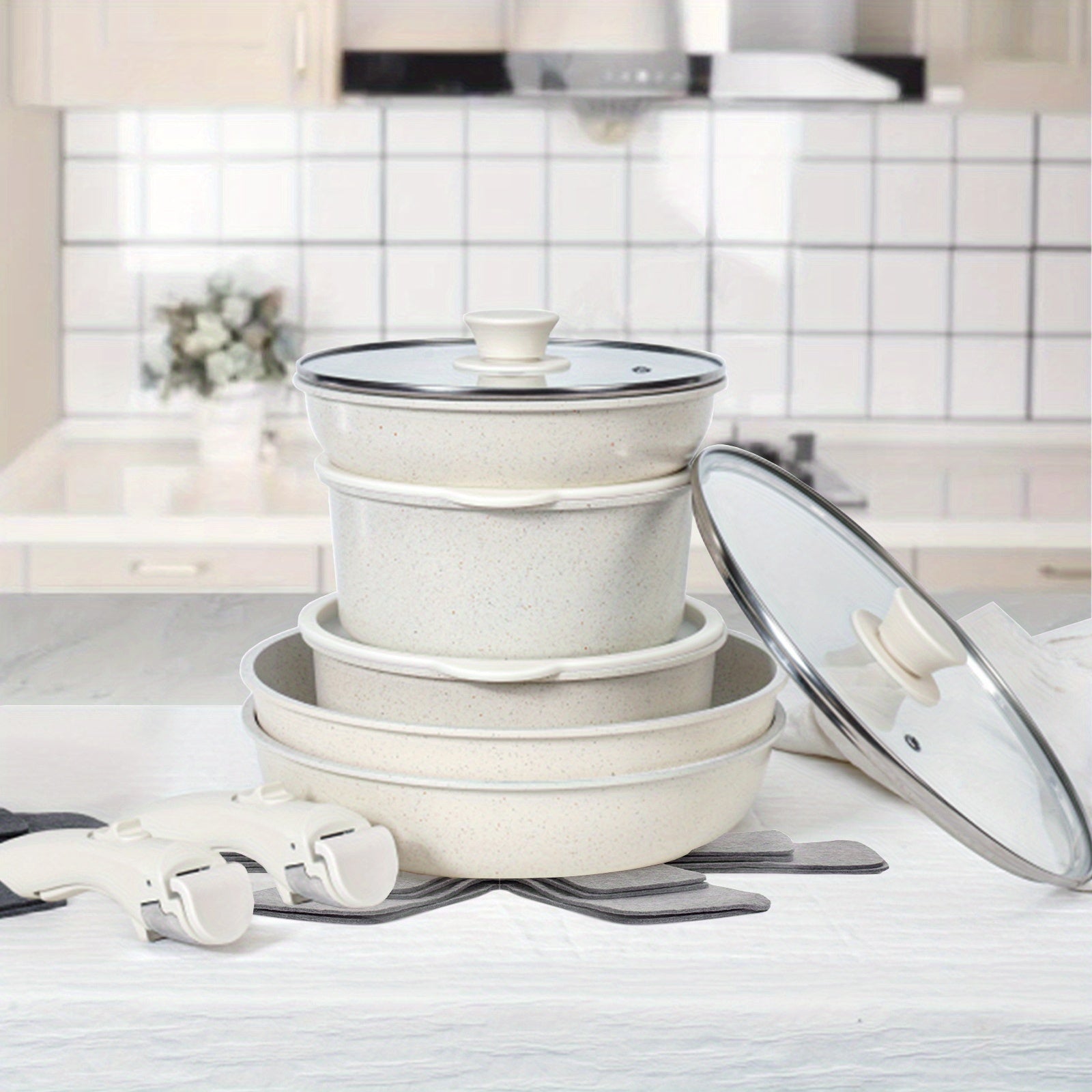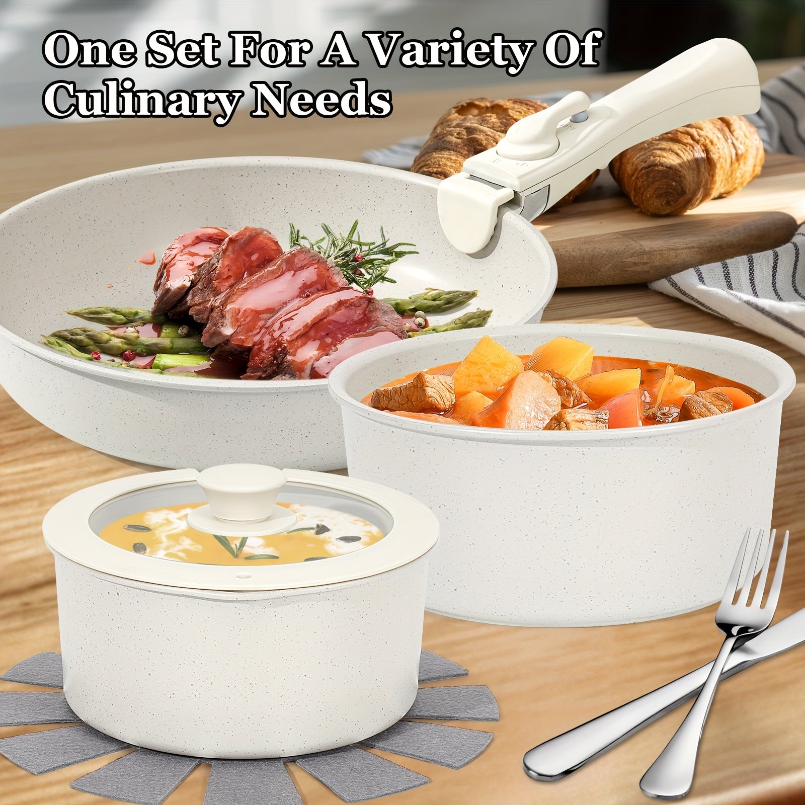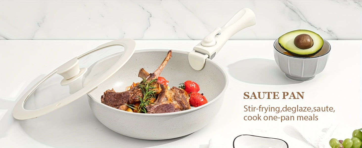 15 Pcs Pots and Pans Set, Non Stick Kitchen Cookware Set, Detachable Handle Nonstick Induction Cookware Cooking Sets with Removable Handle, Cookware Set, White