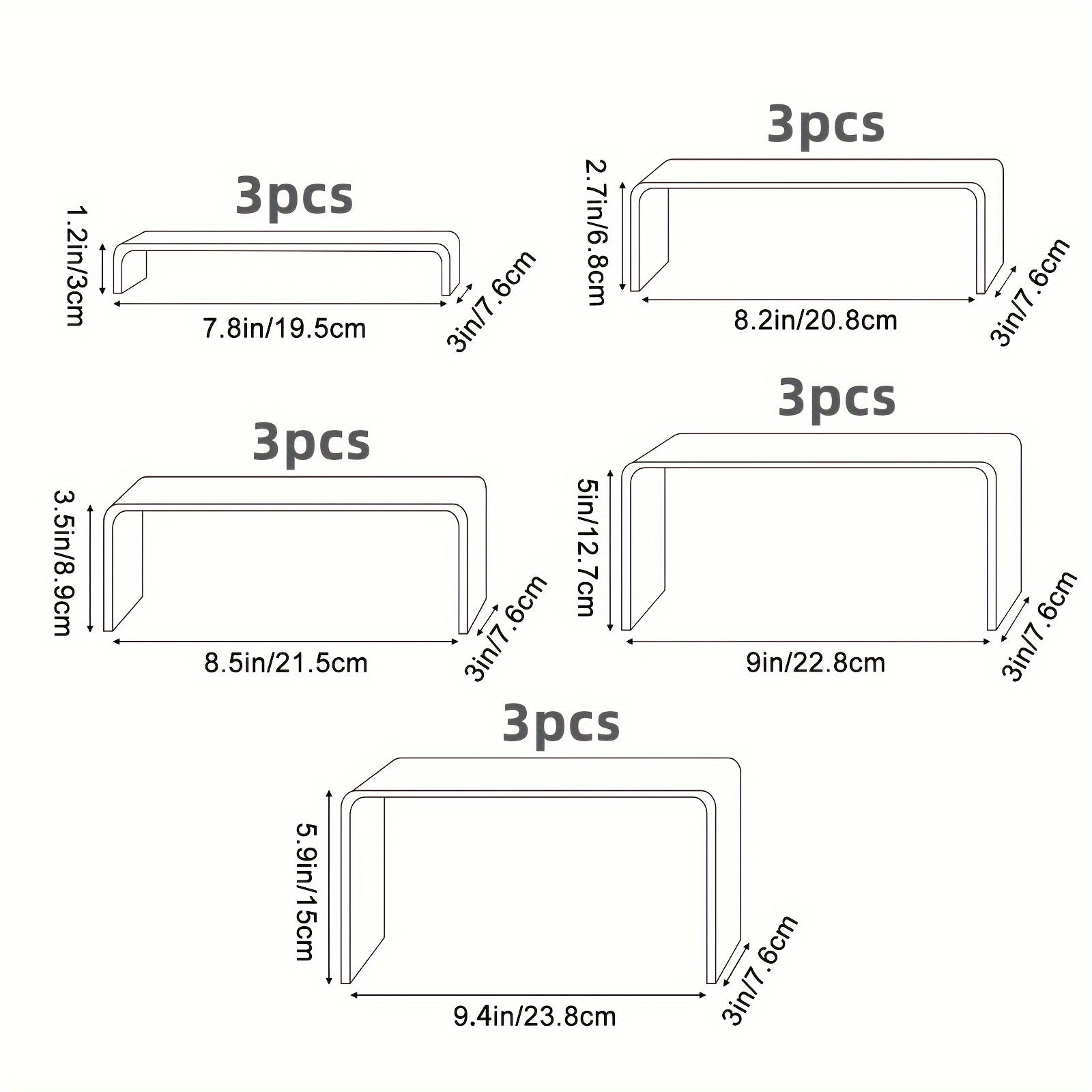 15pcs Clear Acrylic Risers for Display - Multi-Purpose, Durable, Easy-to-Use Stands for Funko Pop, Cupcake, Jewelry, Christmas Decorations, and More (Multiple Sizes)