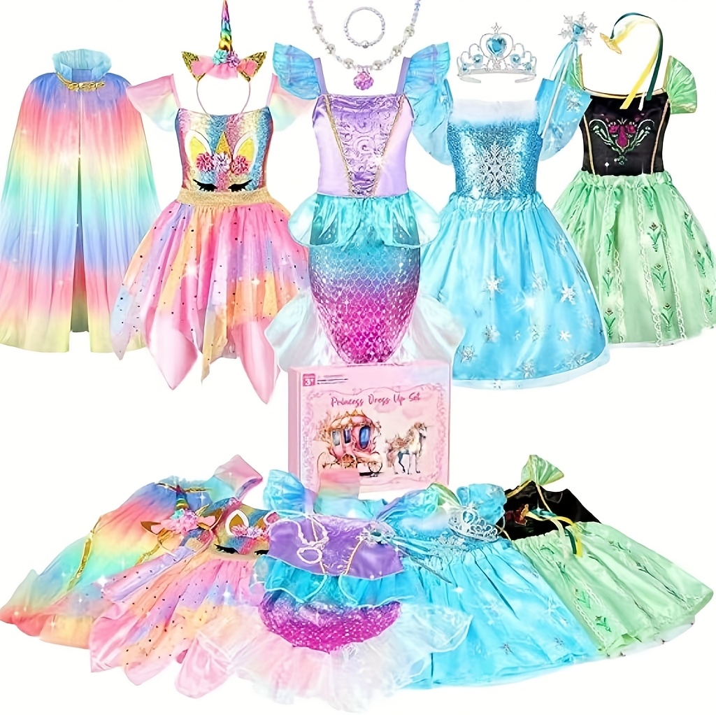 18pcs Princess Dress Up Clothes for Little Girl Role Play Costume Gift Set, Princess Dress Up Toys for Youngsters Girls, Birthday Christmas Party Gifts for Girls Aged 3-6 Years Old