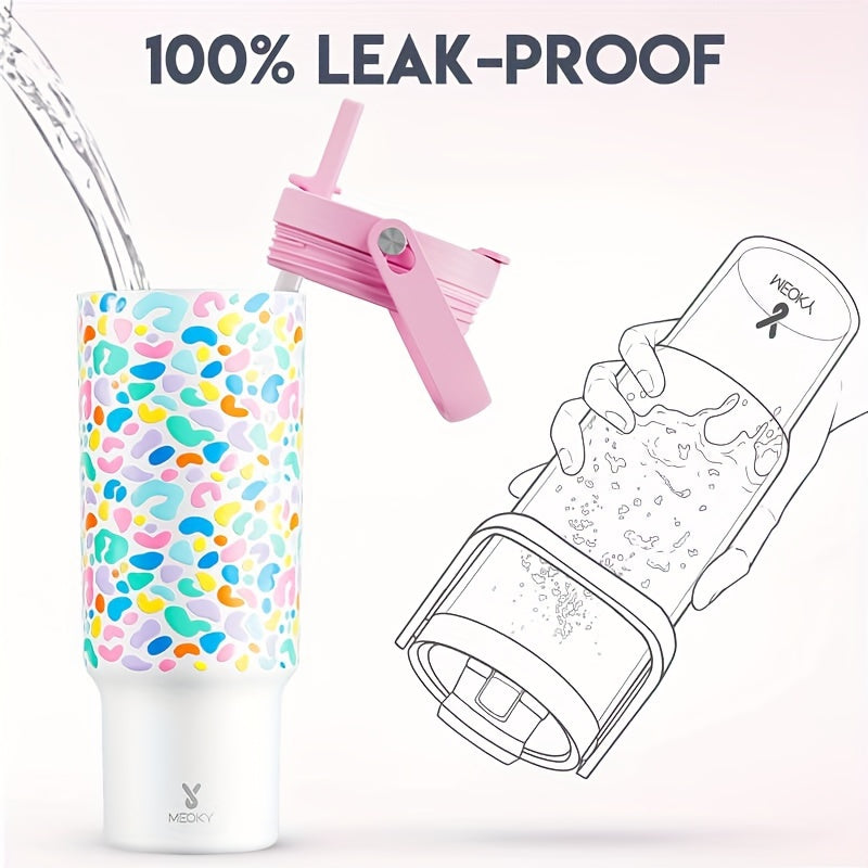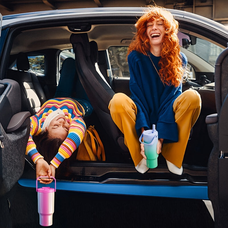 1pc 40oz Insulated Stainless Steel Tumbler With Handle - Leak-Proof, Keeps Cold For 24 Hours, Fits Car Cup Holder - Reusable, Round, Multipurpose Travel Mug With Lid And Straw