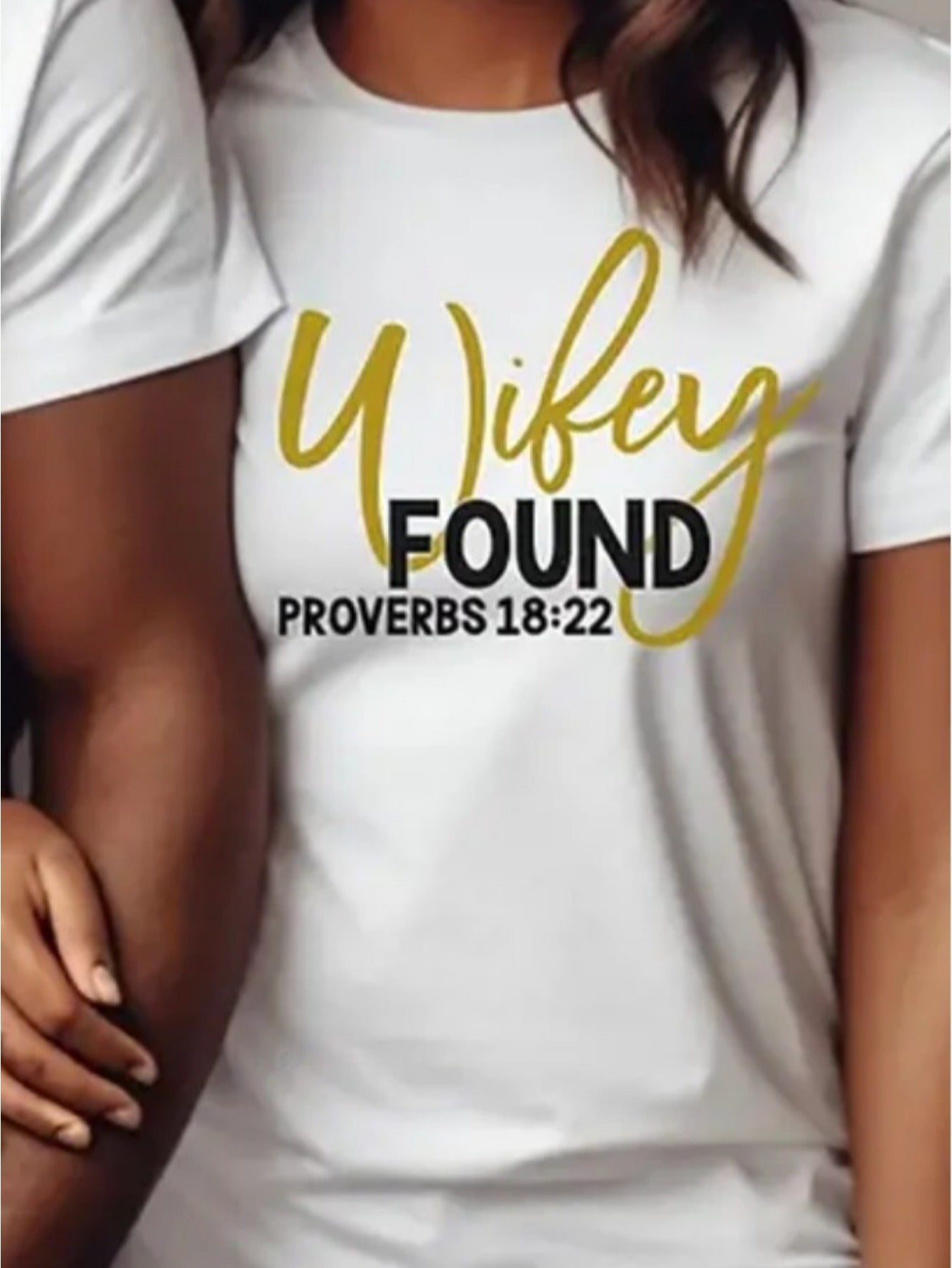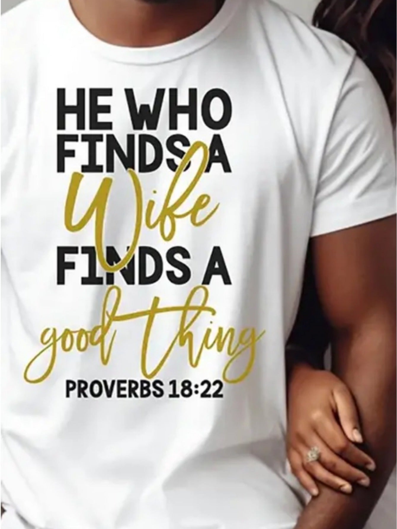 1pc Matching Couples Shirts - "He Who Finds" Anniversary Tee, 180g Cotton, Round Neck, Geometric Pattern, Casual Style