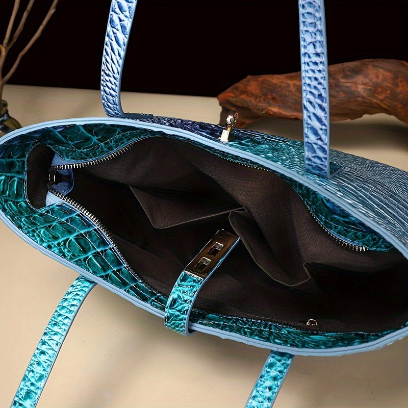 3pcs Set: Colorful Crocodile Pattern Large Capacity Faux Leather Tote & Crossbody Bags With Matching Wallet Combo, Christmas, Mother'S Day Gifts, Halloween Gifts
