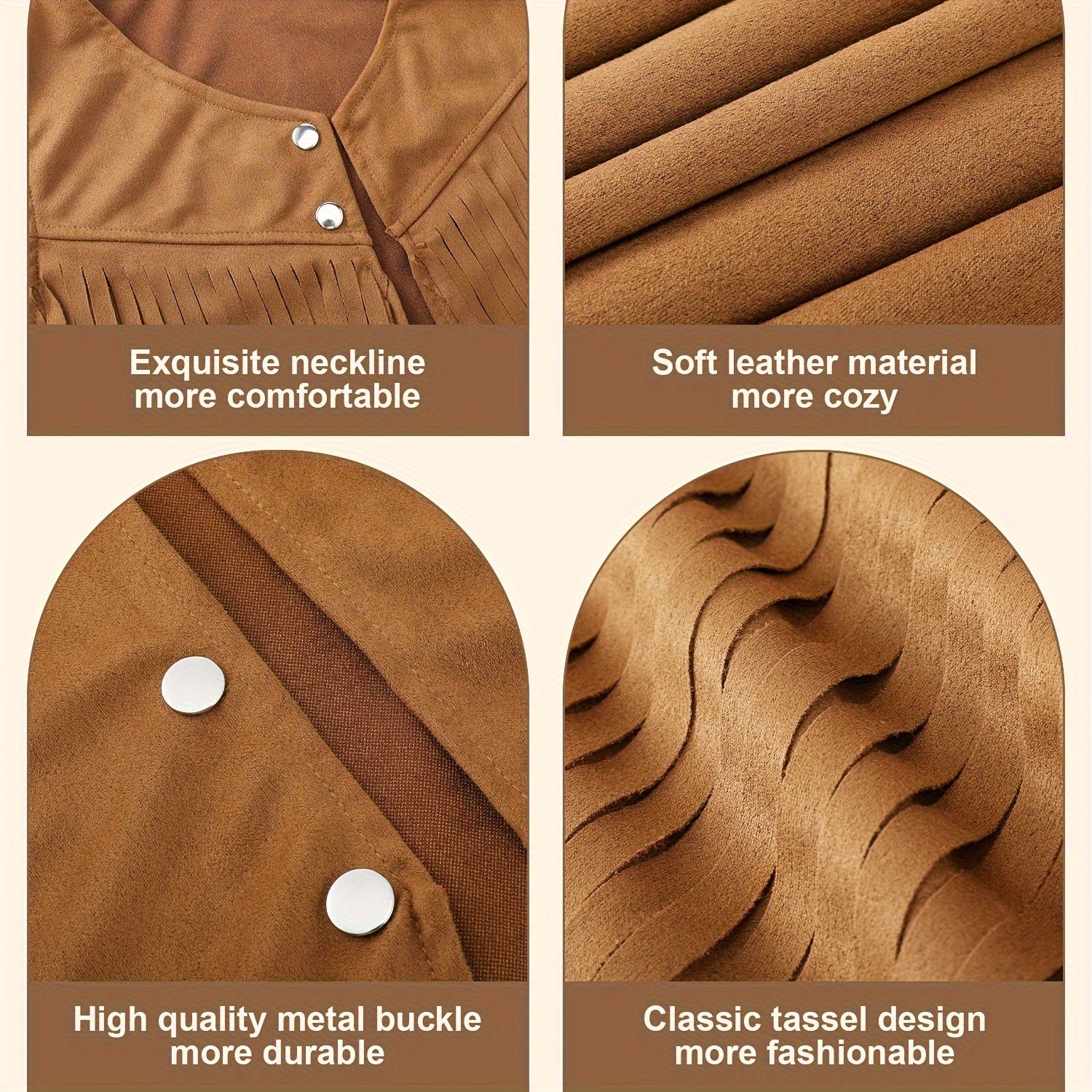9-Item Collection for Women Featuring a Western-Style Cowboy Vest, Bohemian Cowboy Hat, And Accessories for Halloween Role-Playing (In Khaki Color).