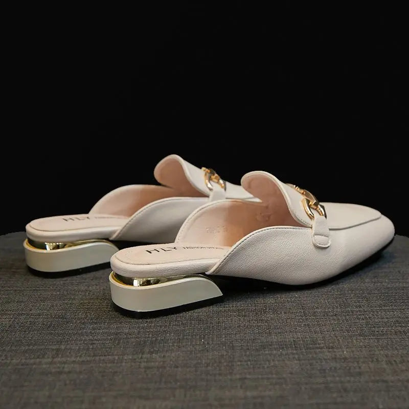 Black Job Low Heel Outside Leather Mules Nude Color Women's Slippers and Ladies Sandals Slides Shoes Small Size on Offer Trend F