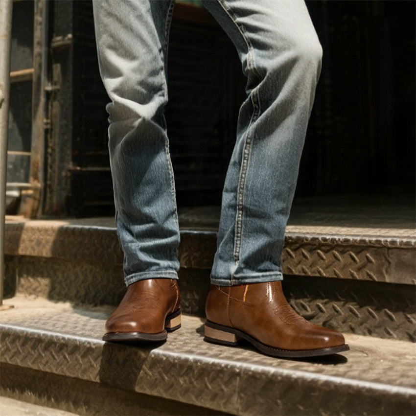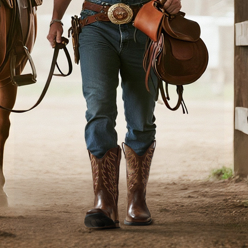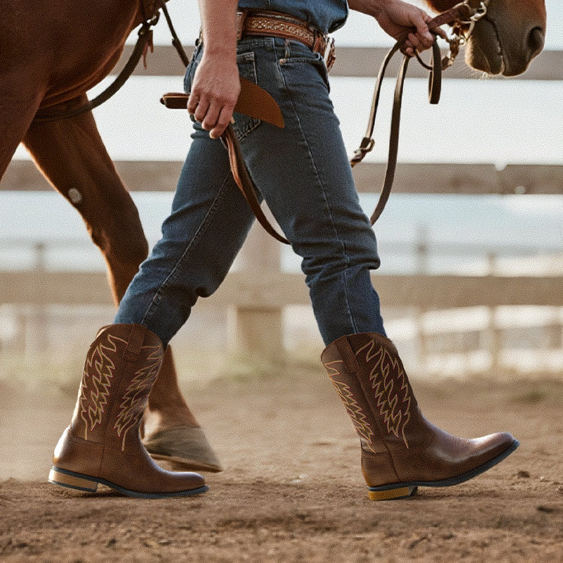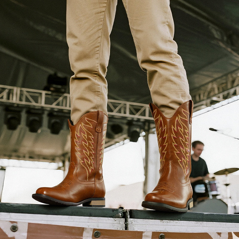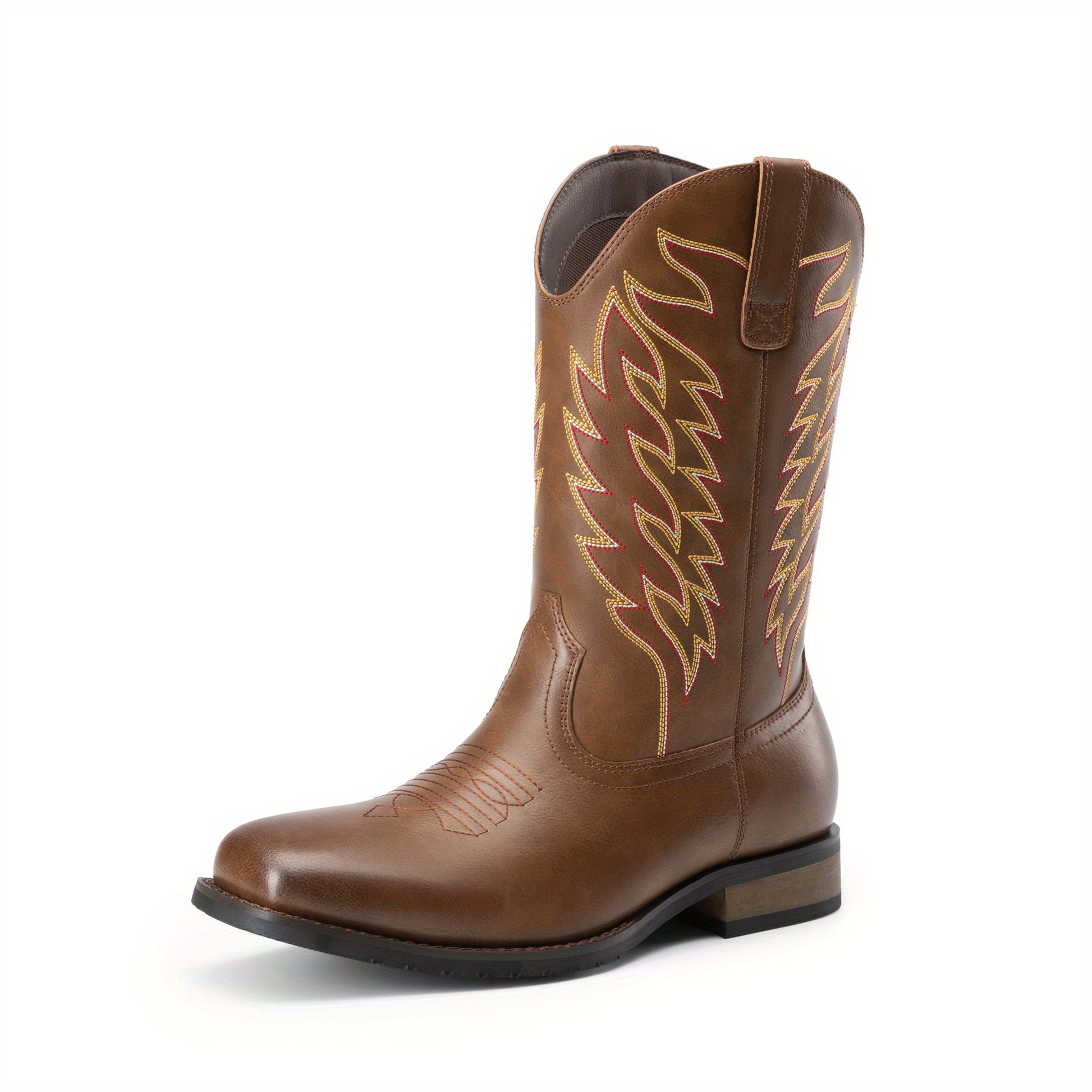 Bruno Marc Men's Slip-On Western Cowboy Boots with Chic Cloud Pattern & Orange Flame-like Toe - Non-Slip TPR/Rubber Sole, Comfortable PU Upper, Retro Square Toe - All-Terrain Riding, Masquerade & Party Boots for Men (Easy Sli