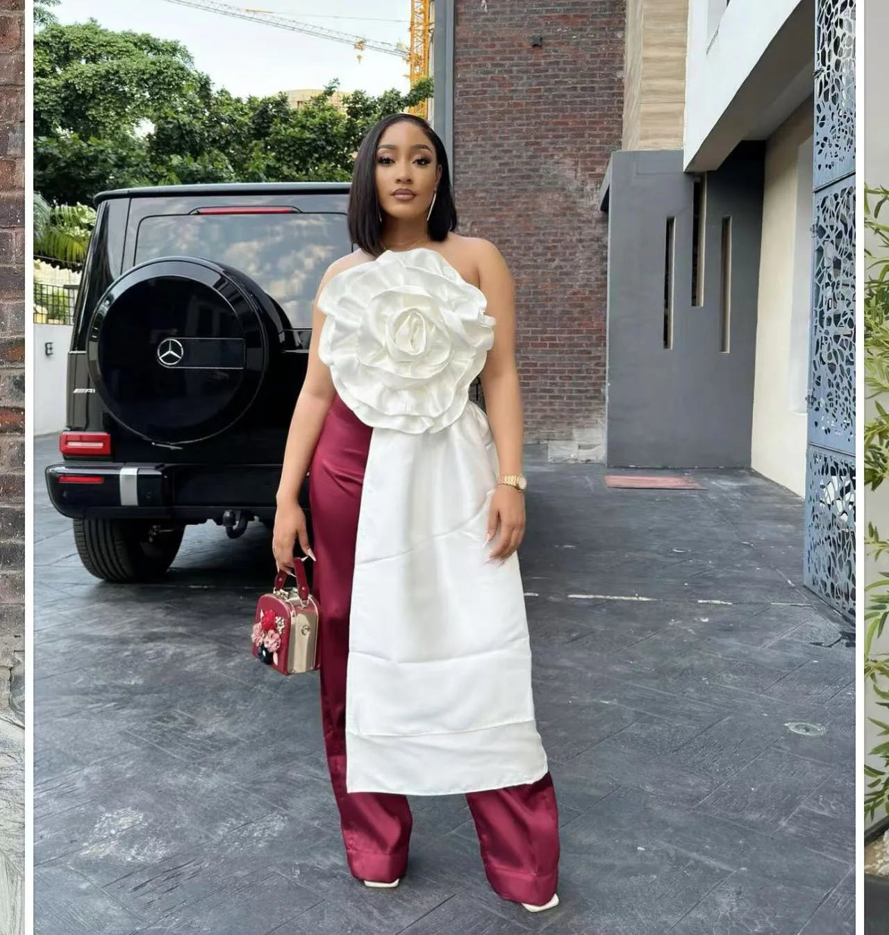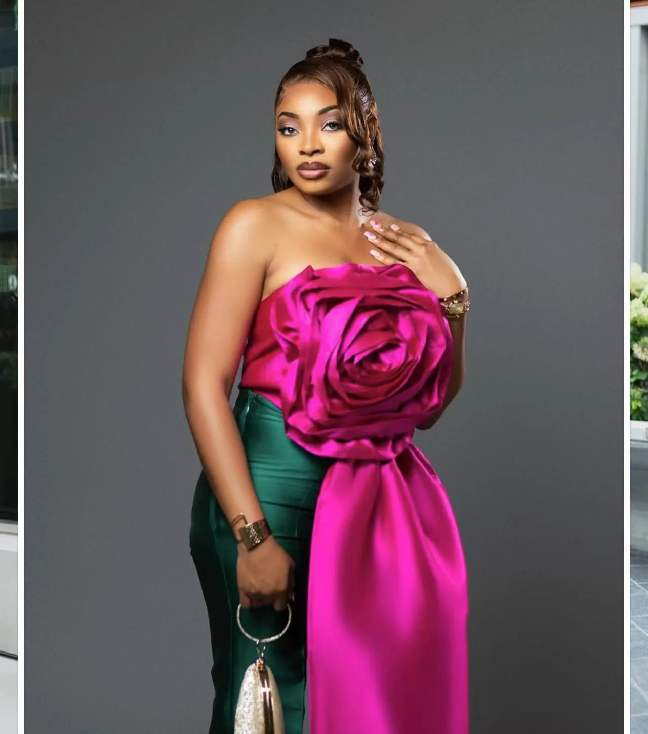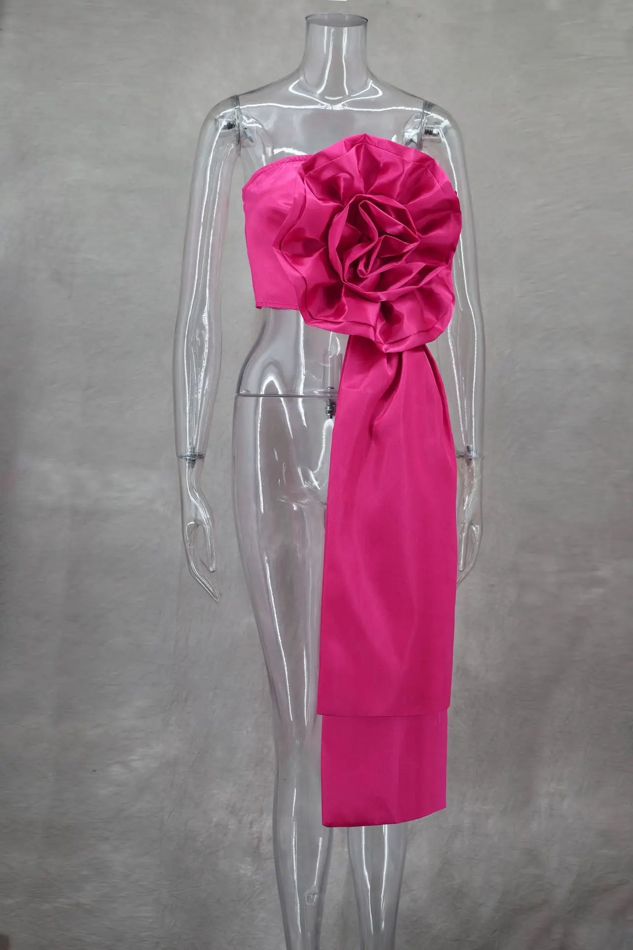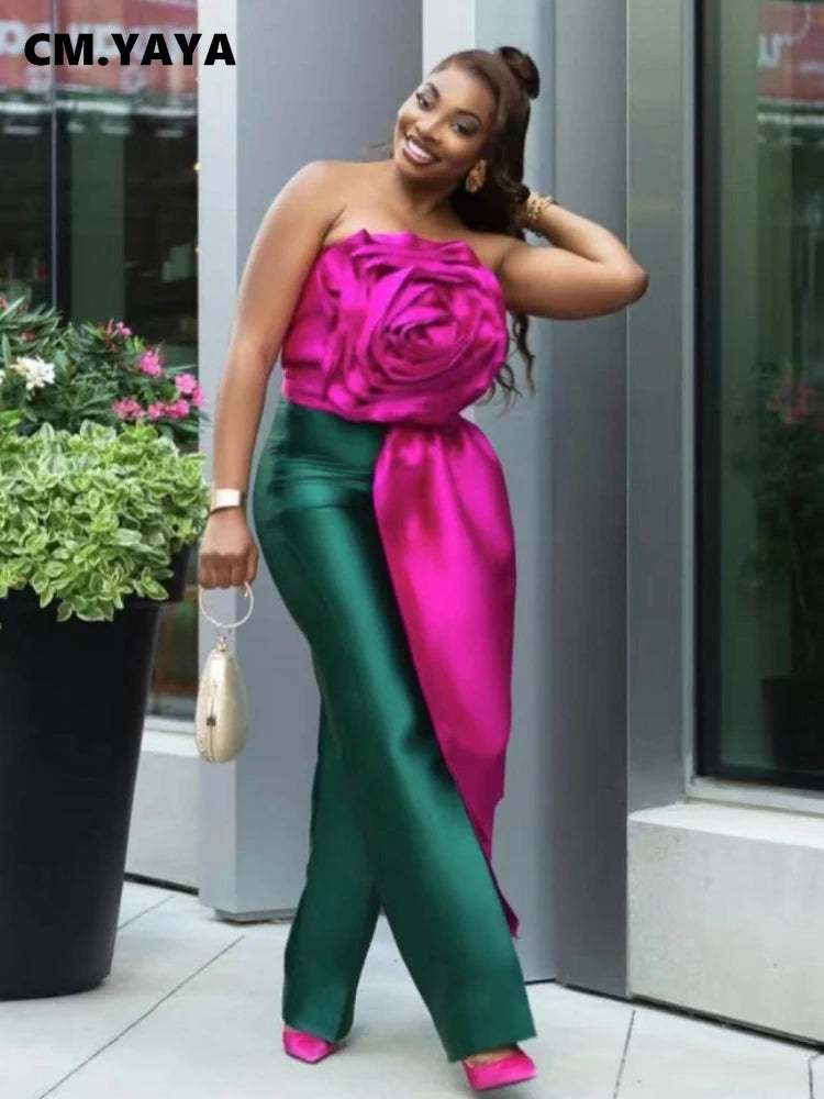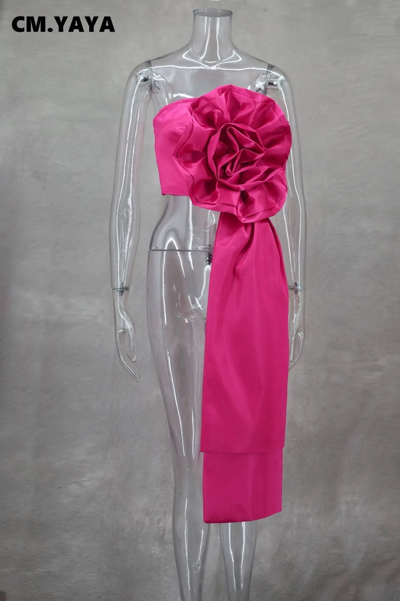 CM.YAYA Women Fashion 3D Flower Applique Strapless Side Crop Top 2025 Summer Vintage Streetwear INS Asymmetrical Tee Tops