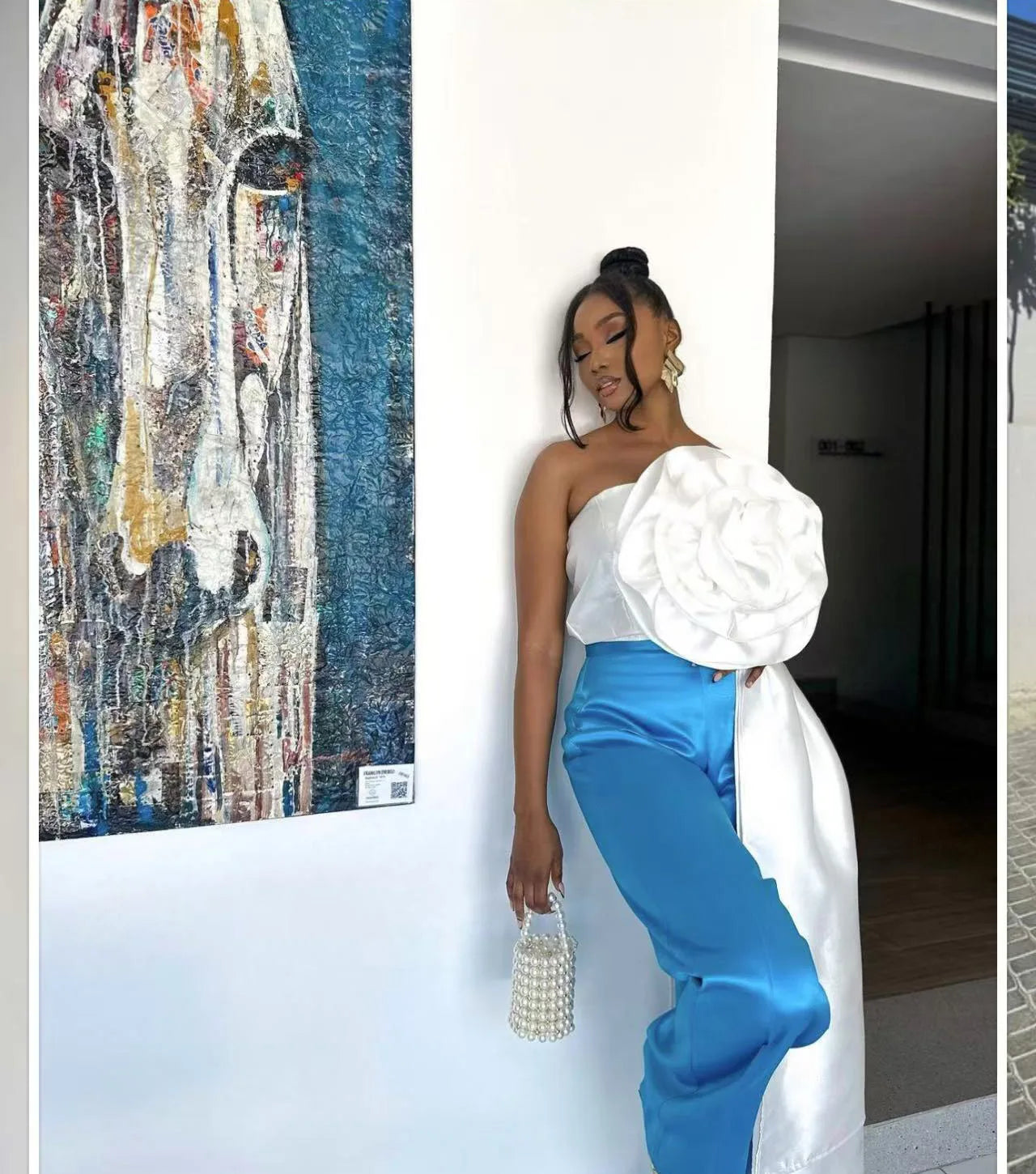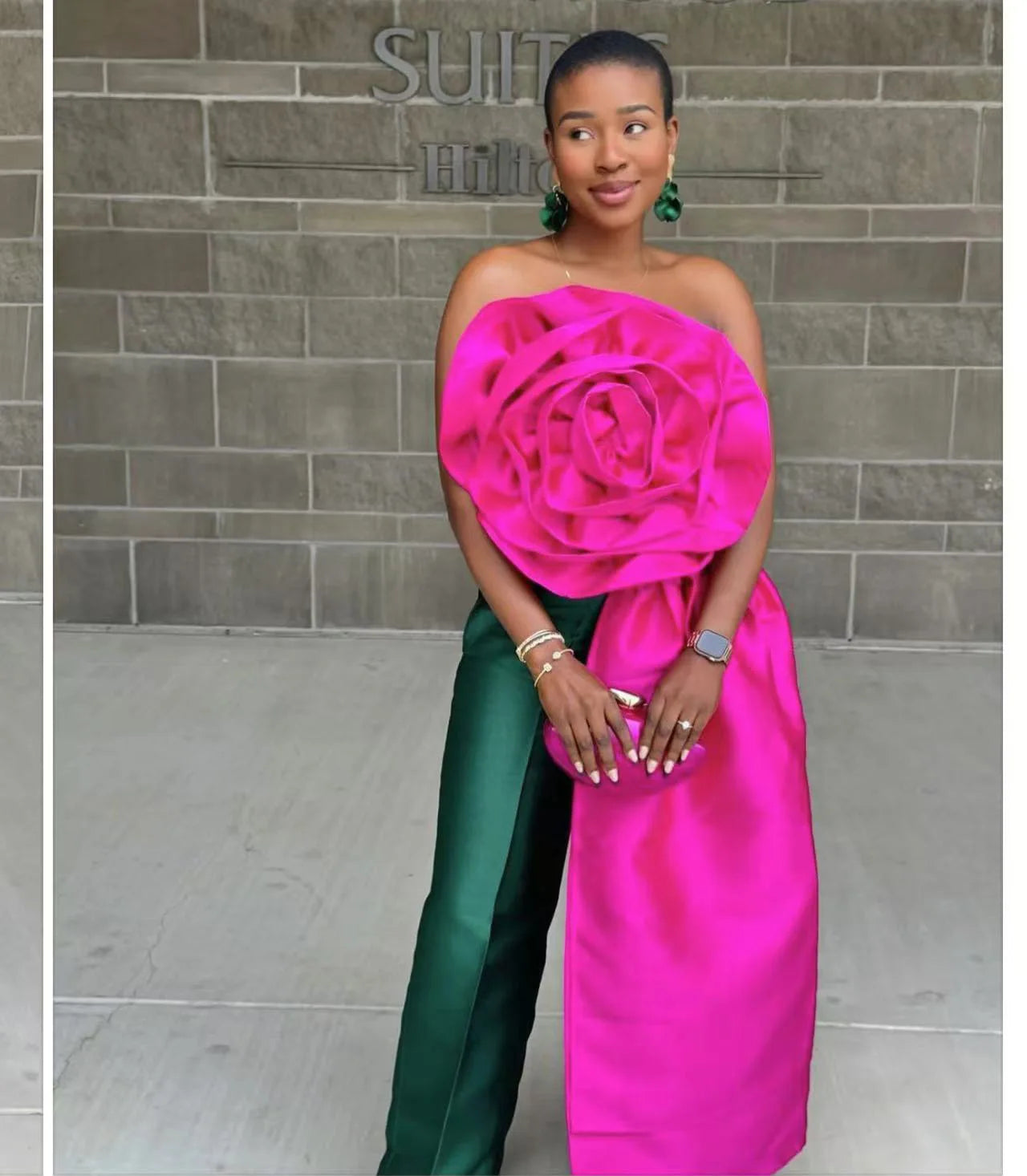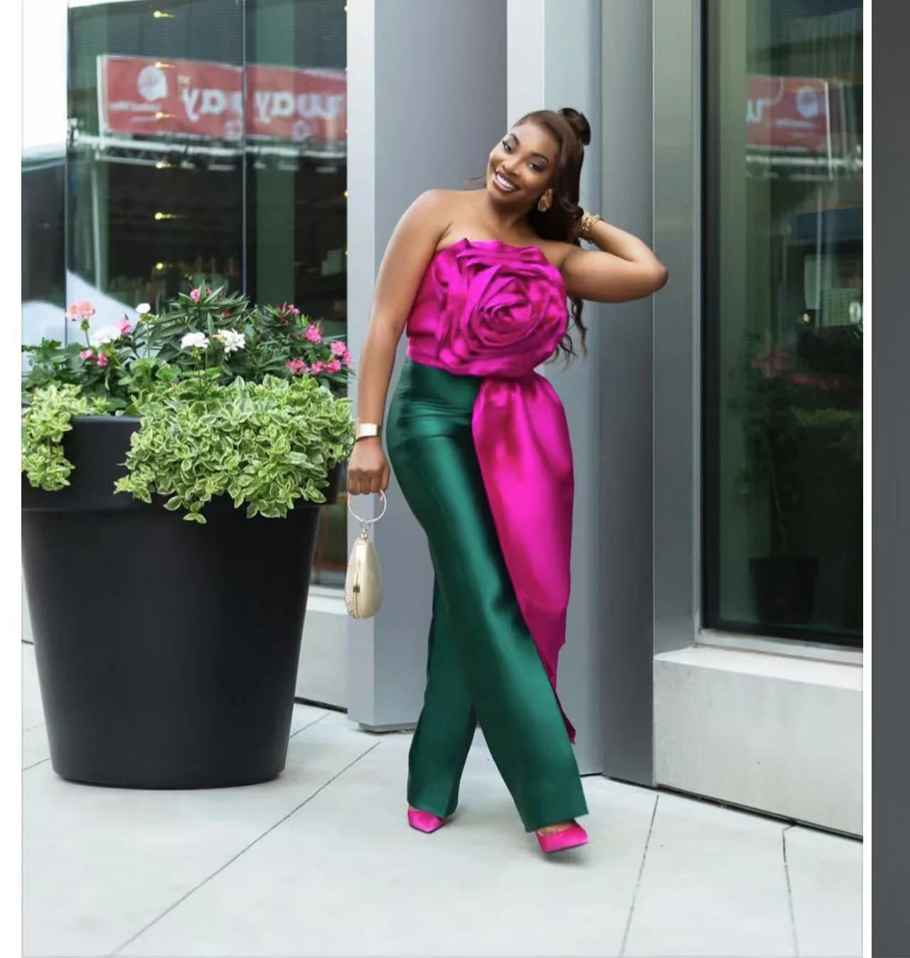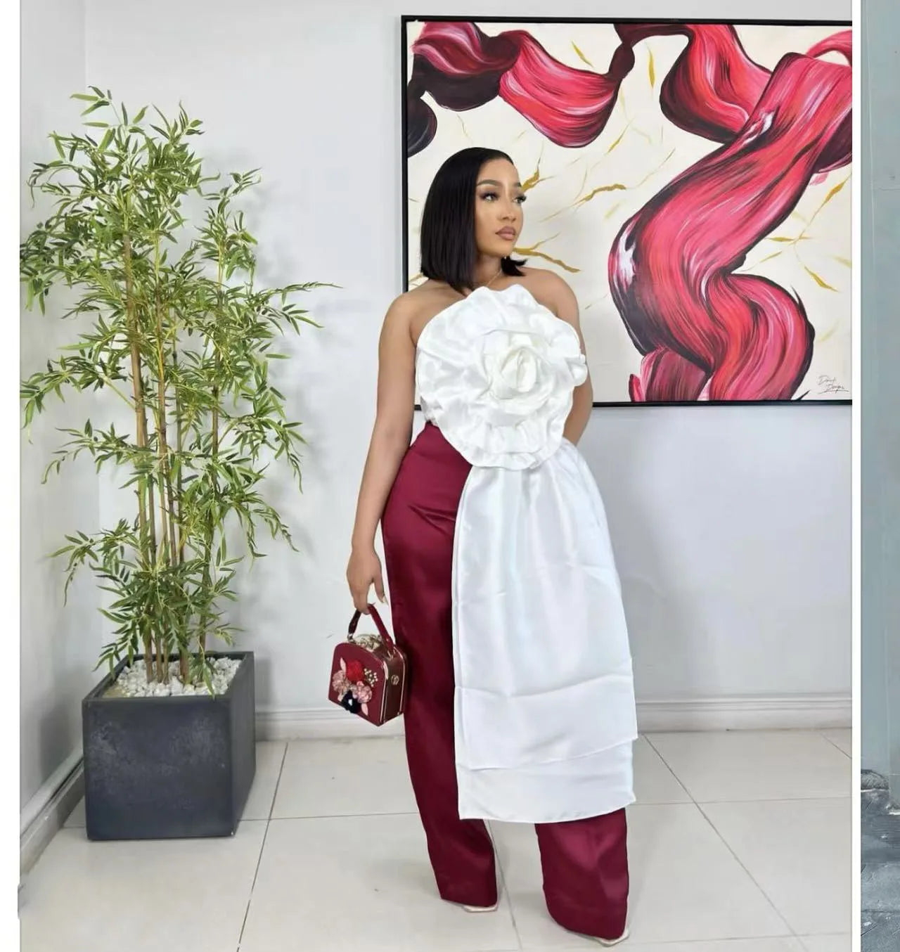 CM.YAYA Women Fashion 3D Flower Applique Strapless Side Crop Top 2025 Summer Vintage Streetwear INS Asymmetrical Tee Tops