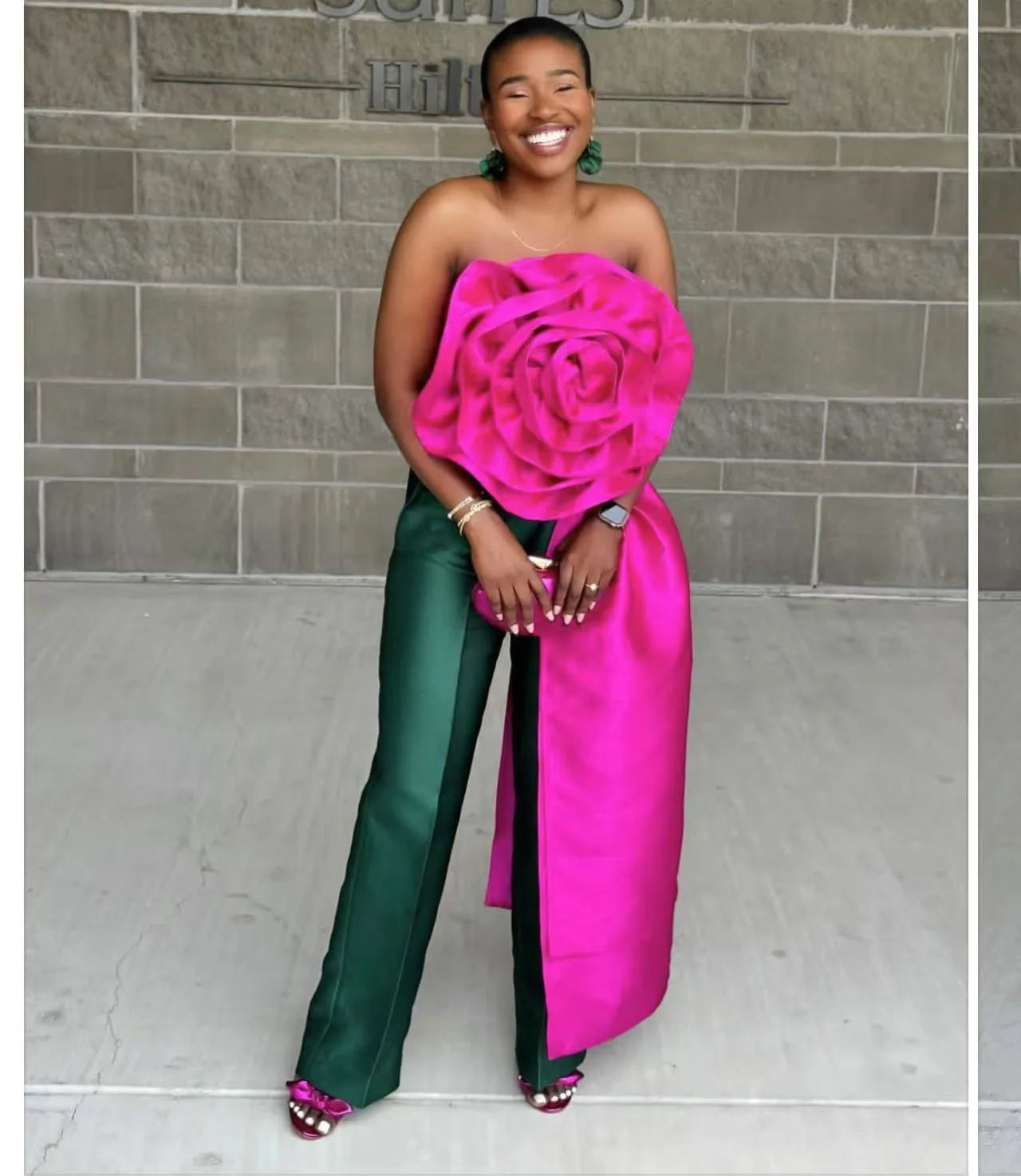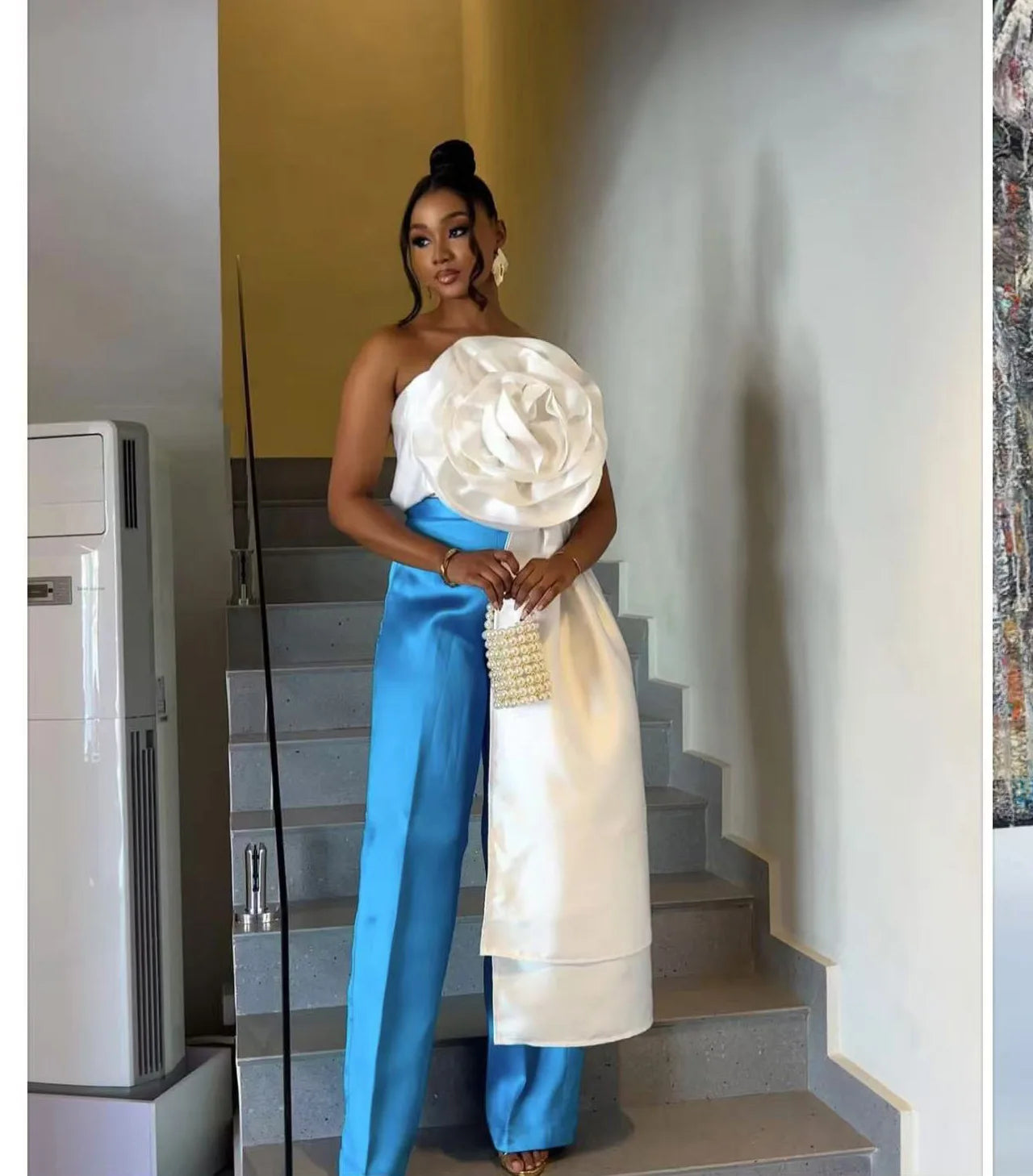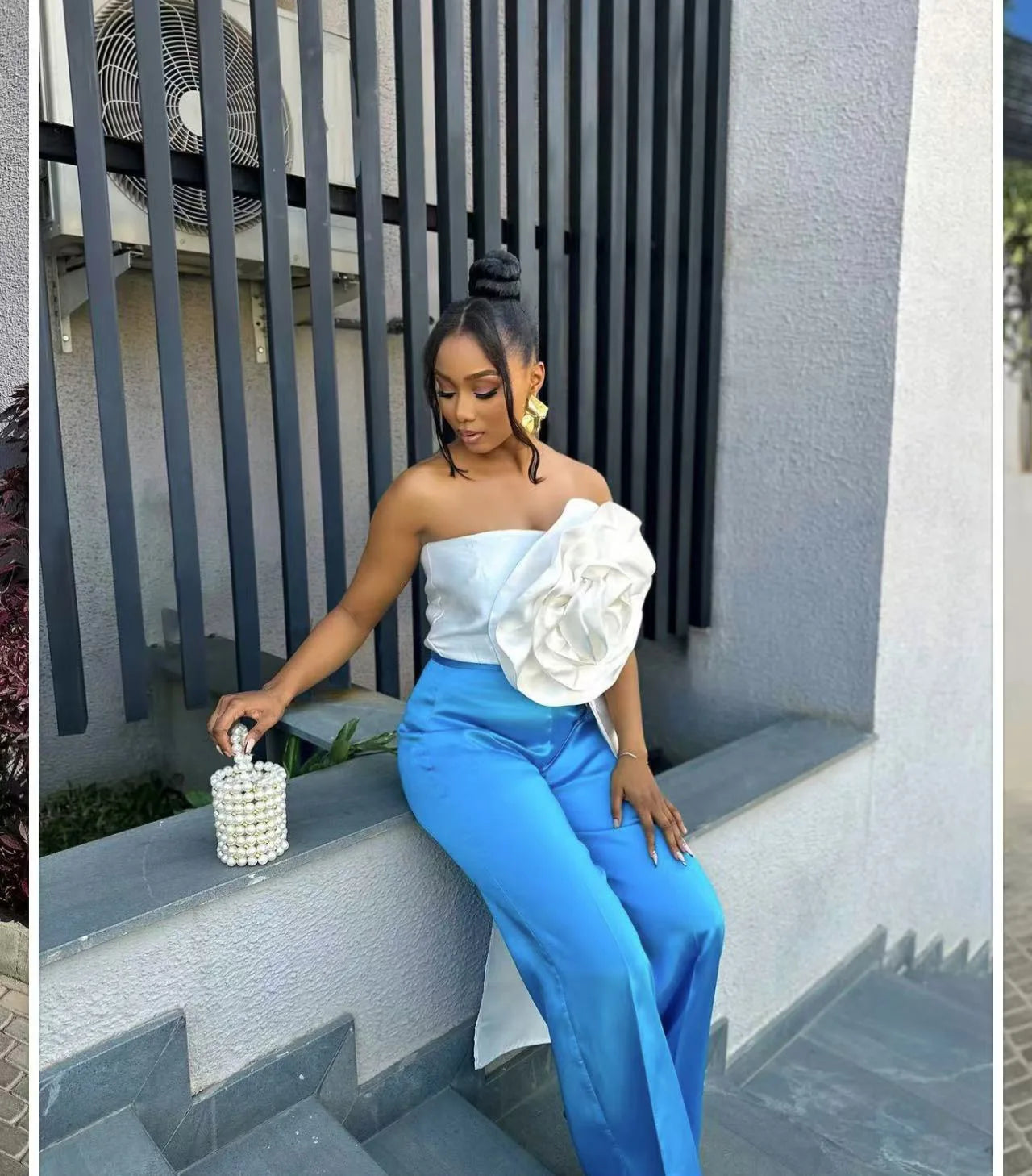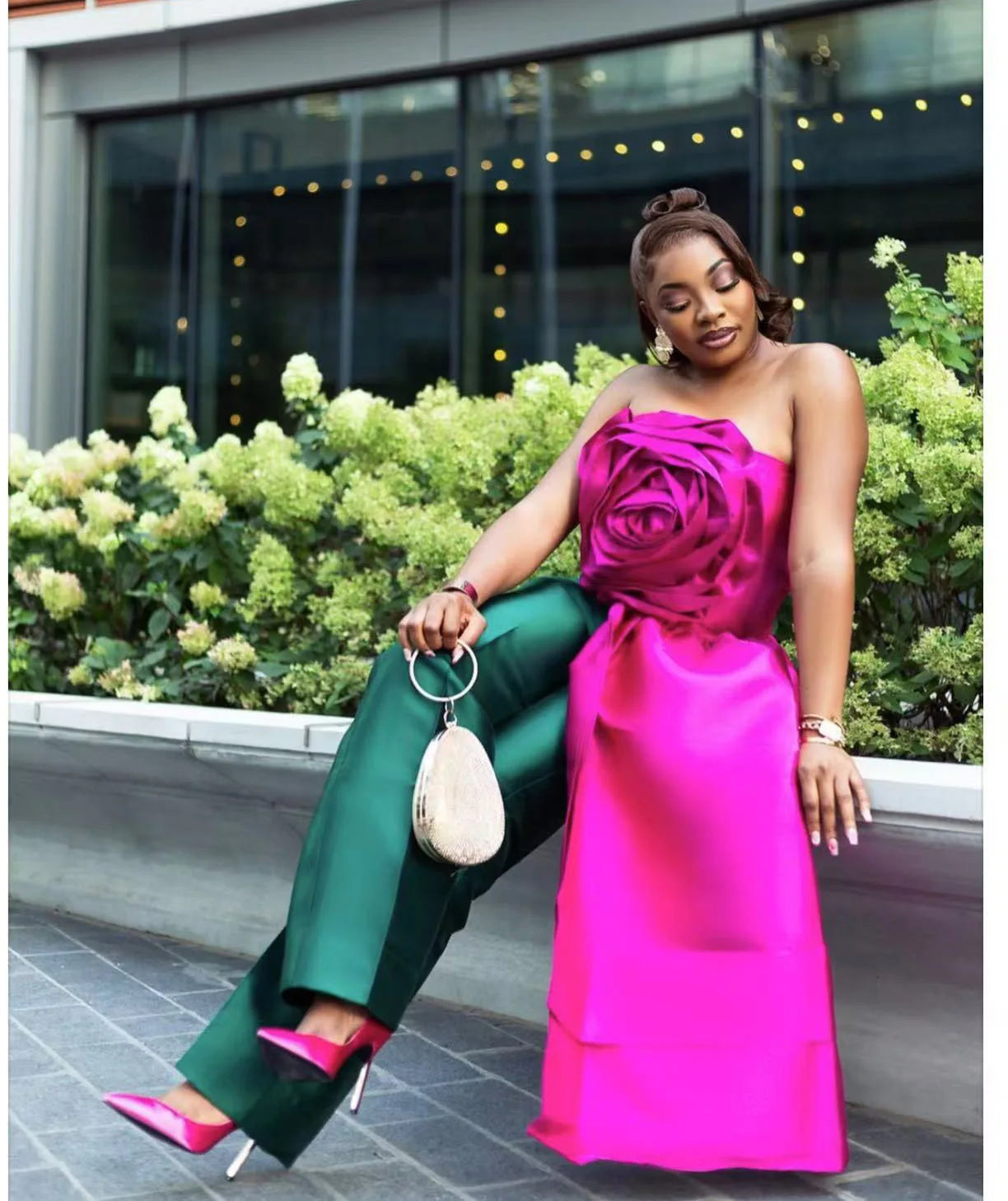 CM.YAYA Women Fashion 3D Flower Applique Strapless Side Crop Top 2025 Summer Vintage Streetwear INS Asymmetrical Tee Tops