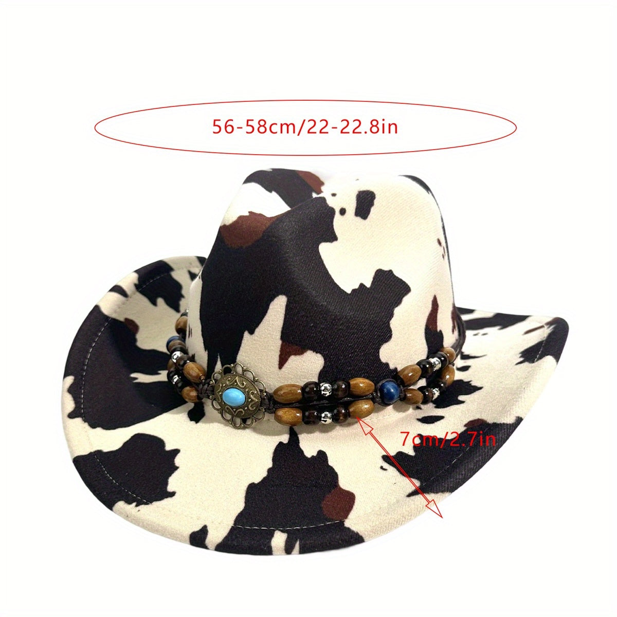Cow Print Cowgirl Hat for Women & Men - Wide Brim Beaded Belt Western Cap with Black & White Cow Pattern, Brown & White Accents, Perfect for Parties, Beach, and Outdoor Events, Cowboy Hat, Party Accessory, Stylish Headwear