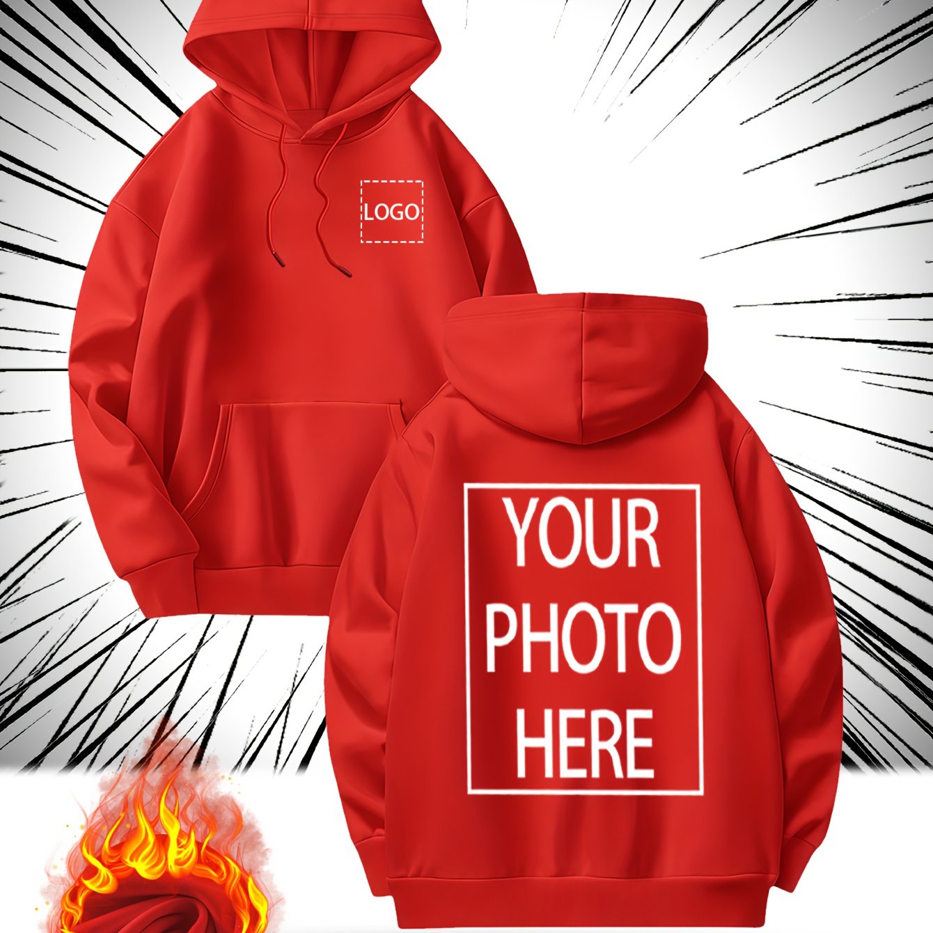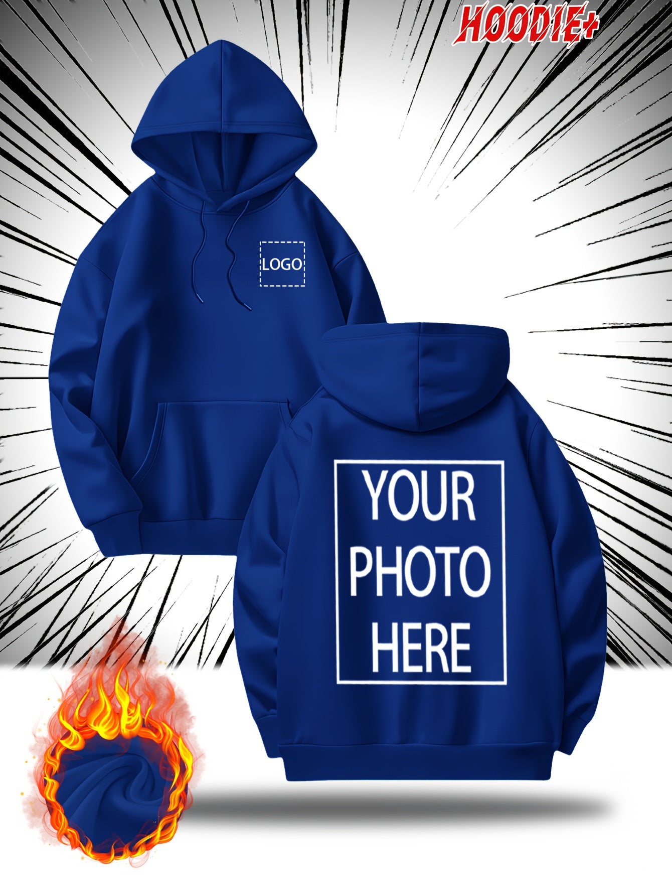 Customizable Men's Hoodie - Personalized Photo/Text Front & Back, Navy Blue with White Lettering, All-Season Comfort Fit, Casual Sporty Design for Halloween Christmas Gifts, Personalized Gift, Durable Casualwear