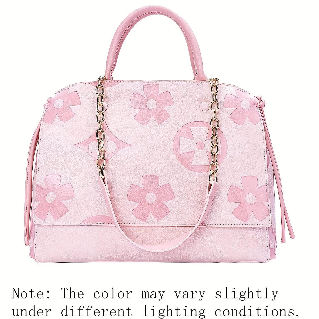 [Elegant Floral Tote Bag] IVKMIVK Women's Floral Embossed Tote Bag - Elegant Synthetic Faux Leather with Golden-Tone Hardware, Large Capacity, Perfect for Daily Commute, Office, and Travel | Floral Embossed Design | Office To