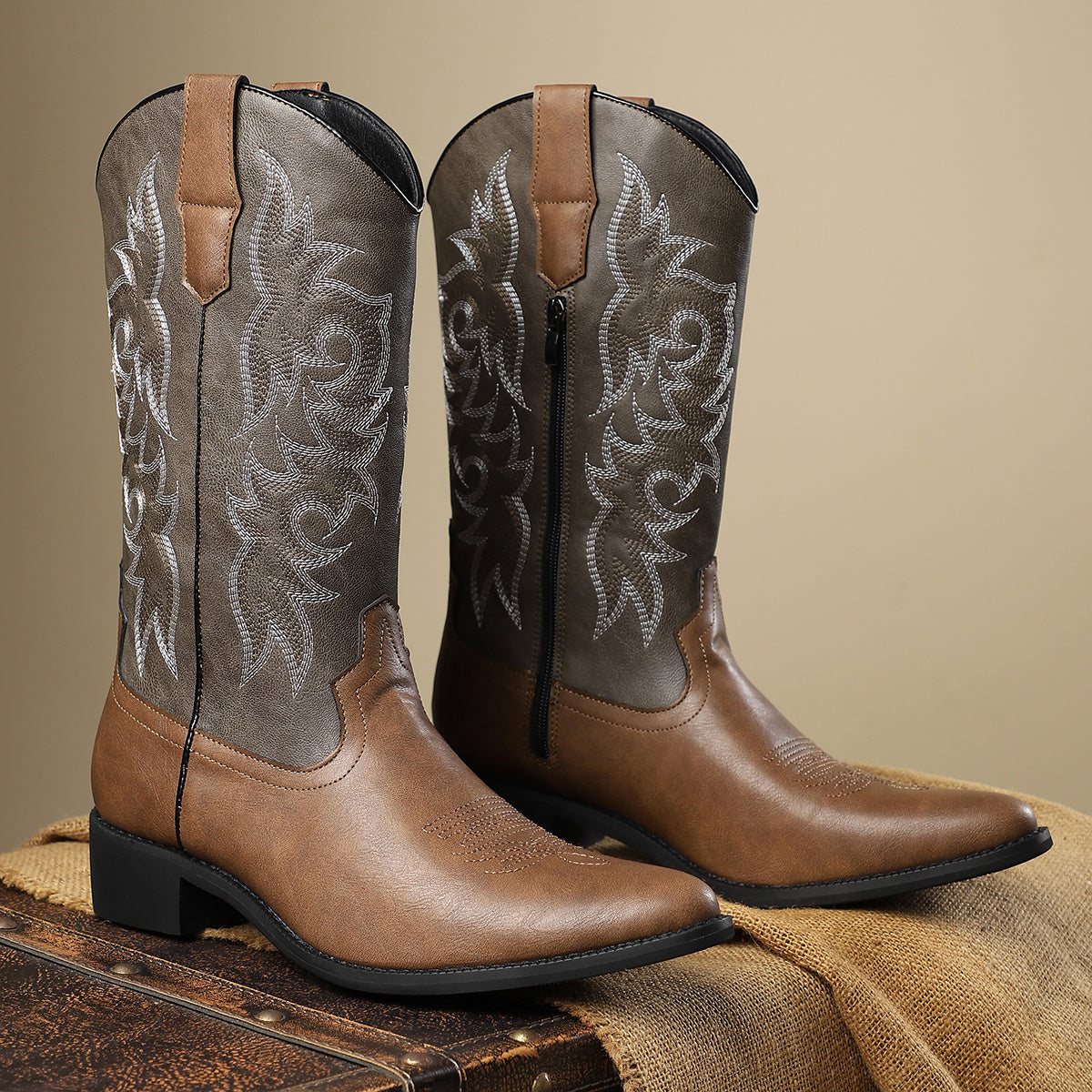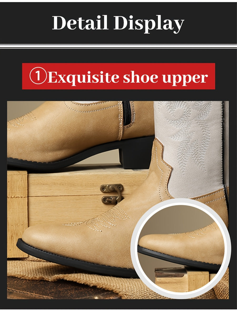 [Father's Day, Cowboy Boots] Father's Day Gift | Men's Retro Western Cowboy Boots | Embroidered Tall Chelsea Boots