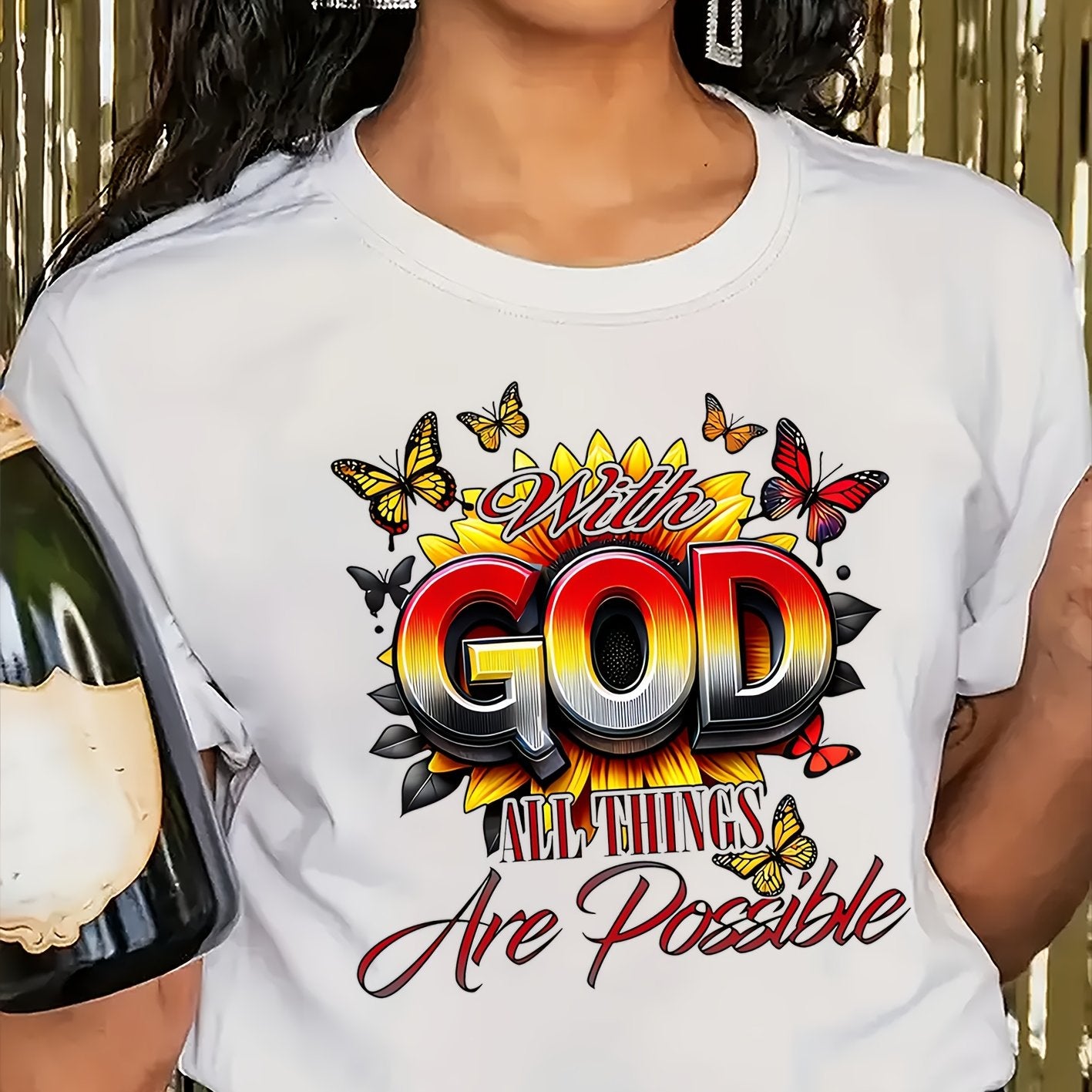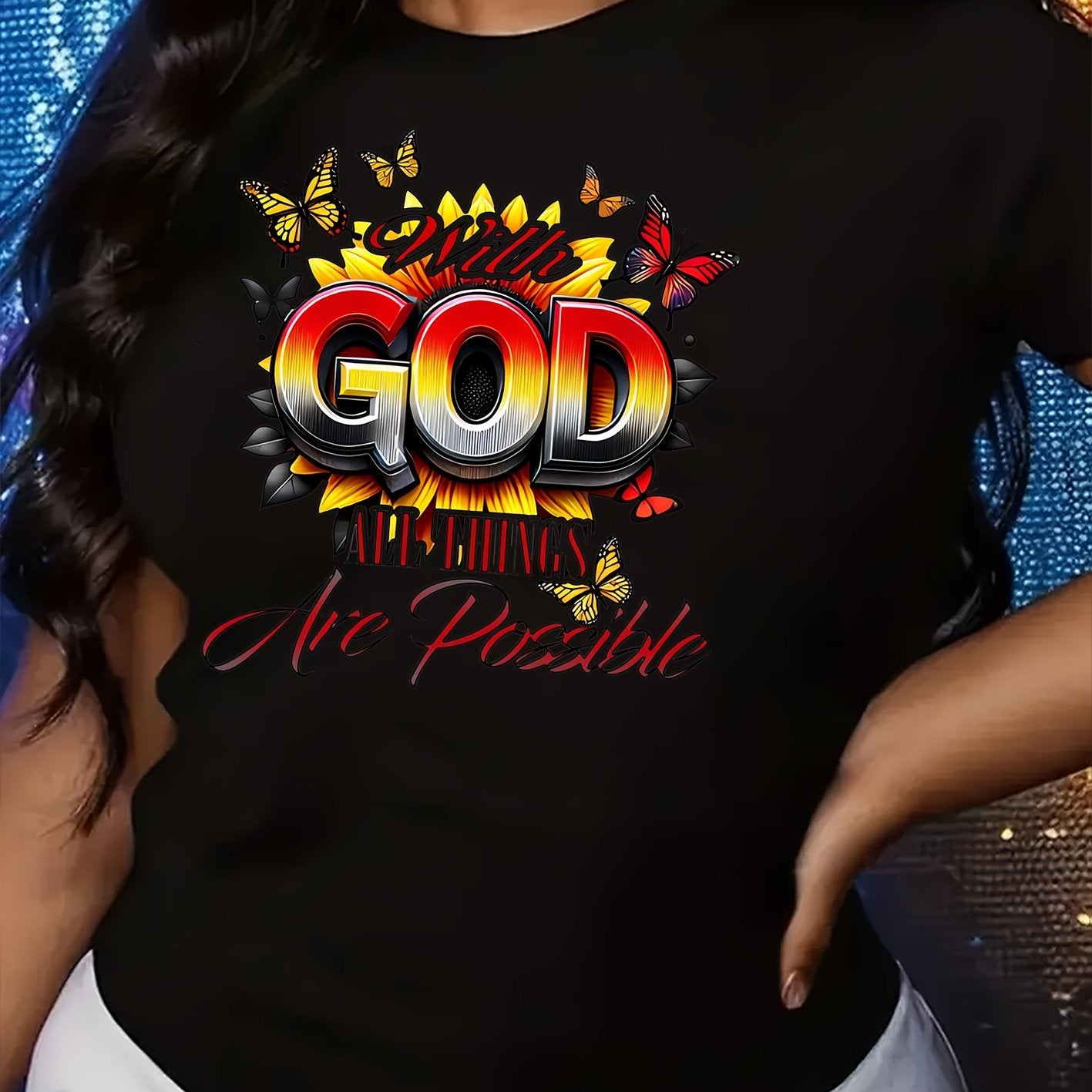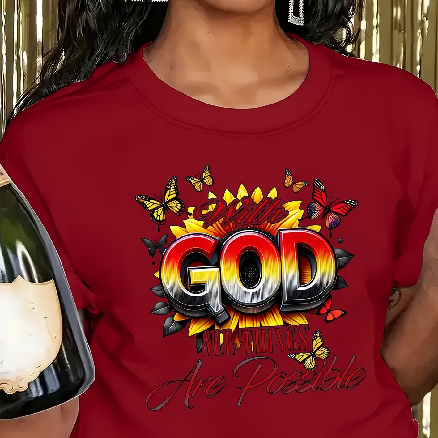 [GOD Print] Women's Short Sleeve T-Shirt | 100% Polyester | Machine Washable | Casual Top for Women
