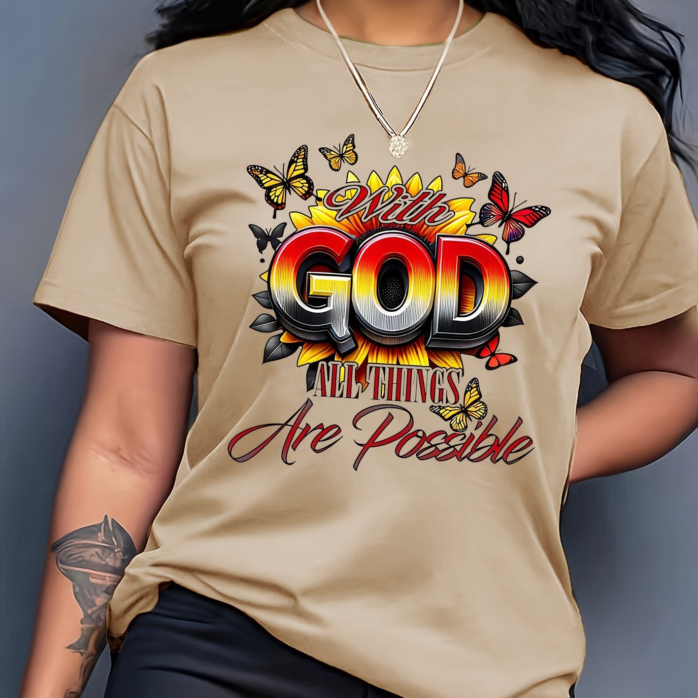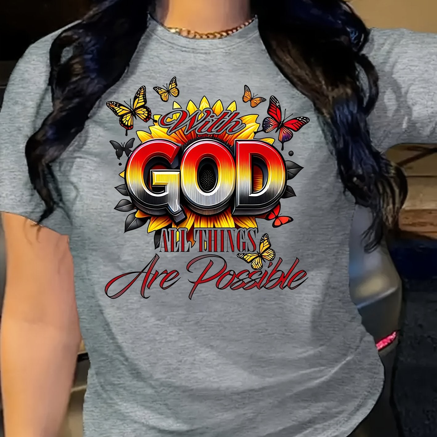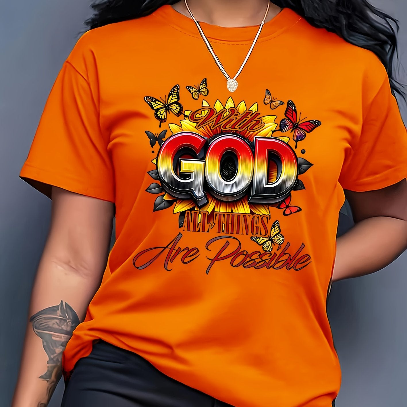 [GOD Print] Women's Short Sleeve T-Shirt | 100% Polyester | Machine Washable | Casual Top for Women