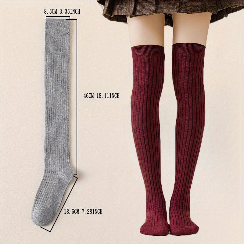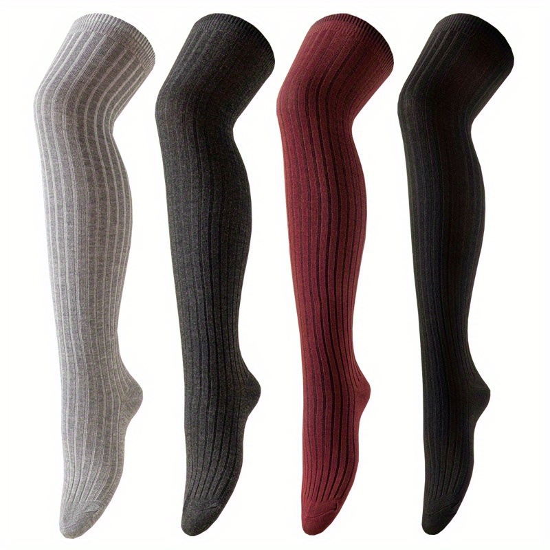 [Japanese Knee Socks] 2/4 Pairs Women'S Japanese Style Over Knee Socks - Solid Color Drawstring, Ribbed Texture, Perfect for Outdoor, Christmas, and Holiday Gifts, Festive Gift Socks | Ribbed Texture Socks | Socks, Cute Socks