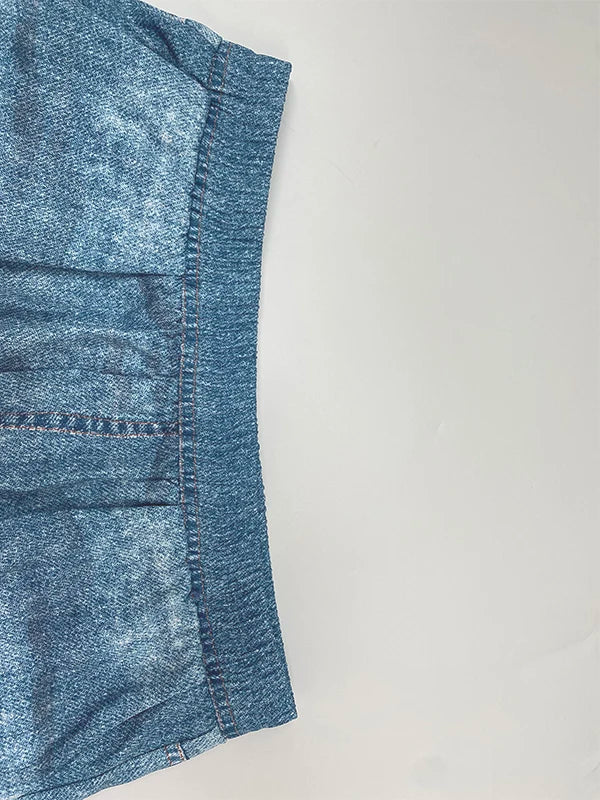 Female Original Creation Flower Printed Blue Casual Pants Bottoms for Summer Spring