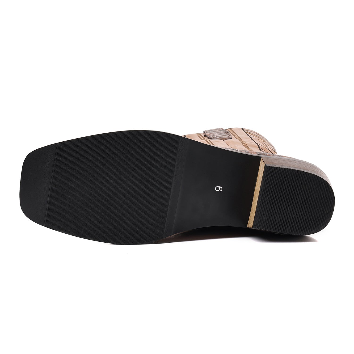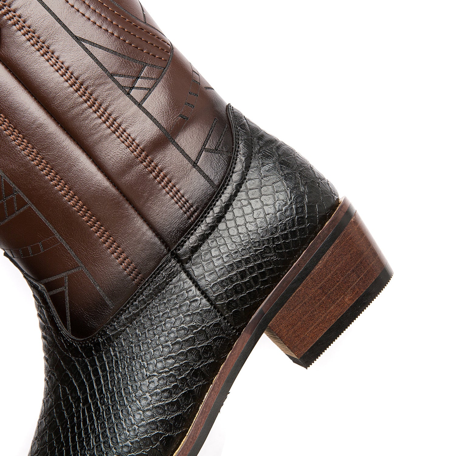 Men's Western Cowboy Boots with Imitation Snake Pattern & Wooden Heel Sole - Slip-Resistant High Heel, Pointed Toe Long Boots for Men & Women, Rustic Brown Booties for Casual & Semi-Formal Outfits