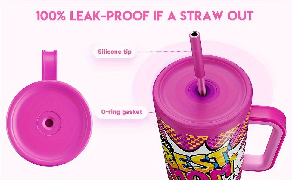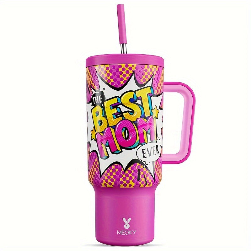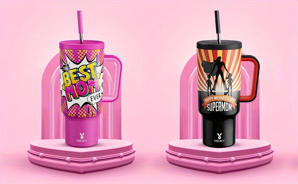 [MEOKY Stainless Steel Tumbler] MEOKY 40oz Stainless Steel Tumbler with Handle | Leak-Proof, Insulated Travel Mug for Hot & Cold Drinks, Perfect Gift for Father's Day & Mother's Day, Round Shape, Hand Wash Only, Travel Drinkw