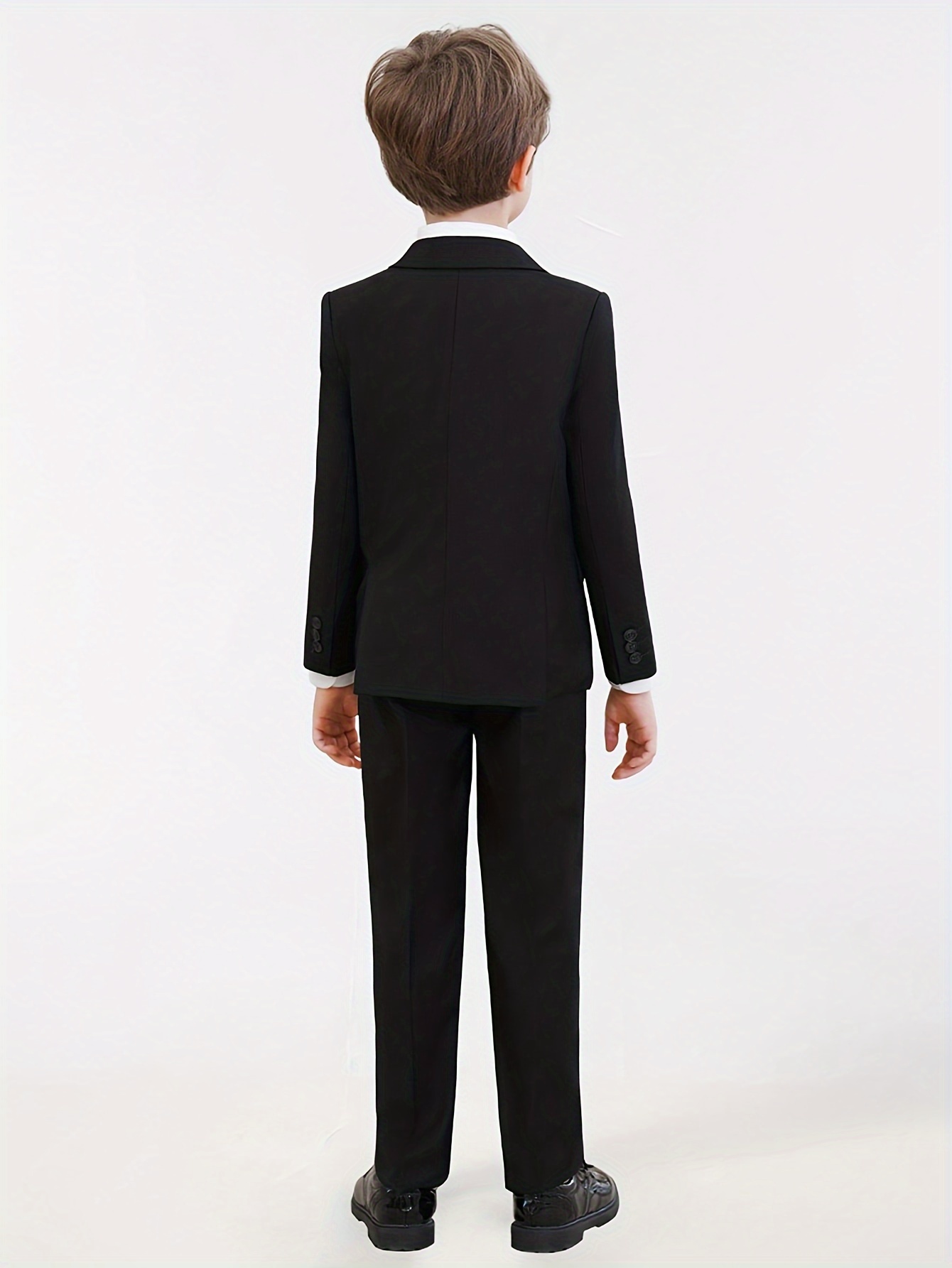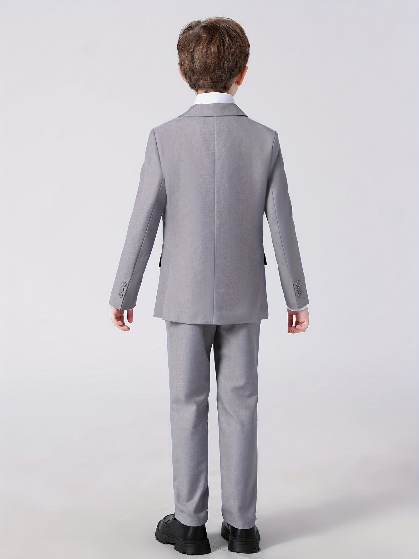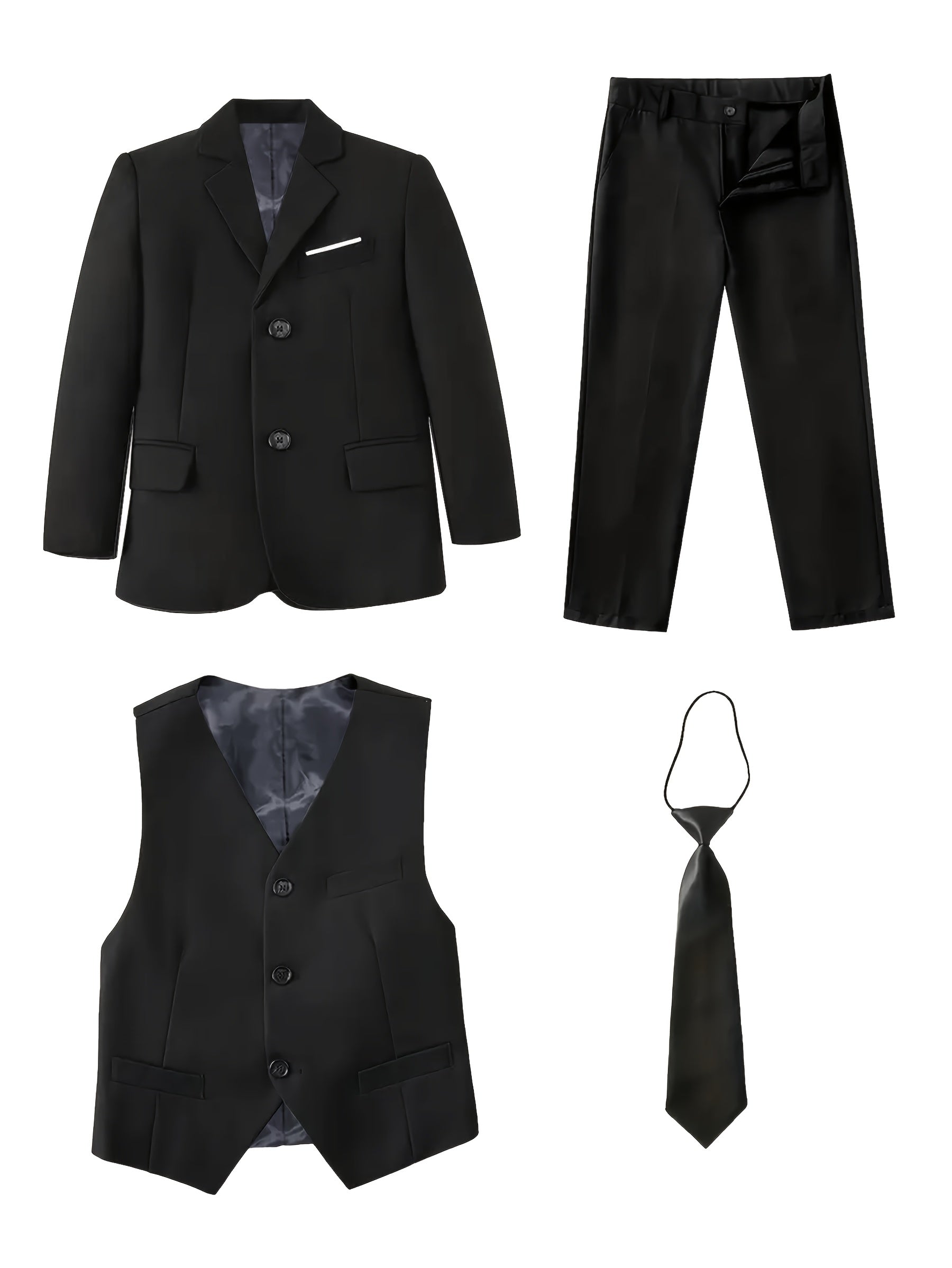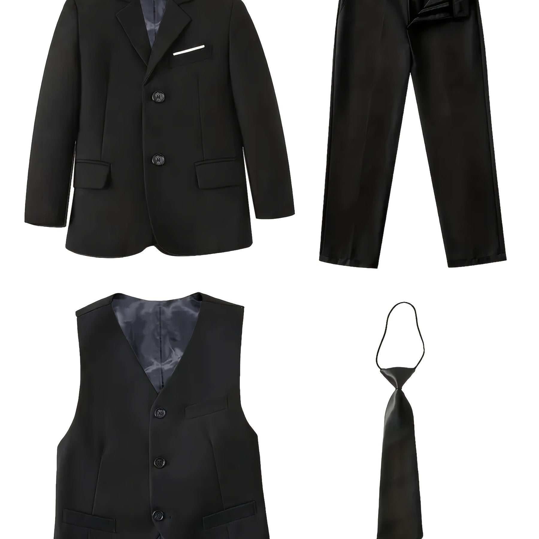 Mosedou Boys 4pcs Suit Set Blazer&Waistcoat&Pants&Tie 2-16Yrs Kids Formal Wear British Style Wedding & School Outfit Boys' Suits 4pcs Sets Teens Formal Suits for Vest&Tie Wedding Flower Boy Attire