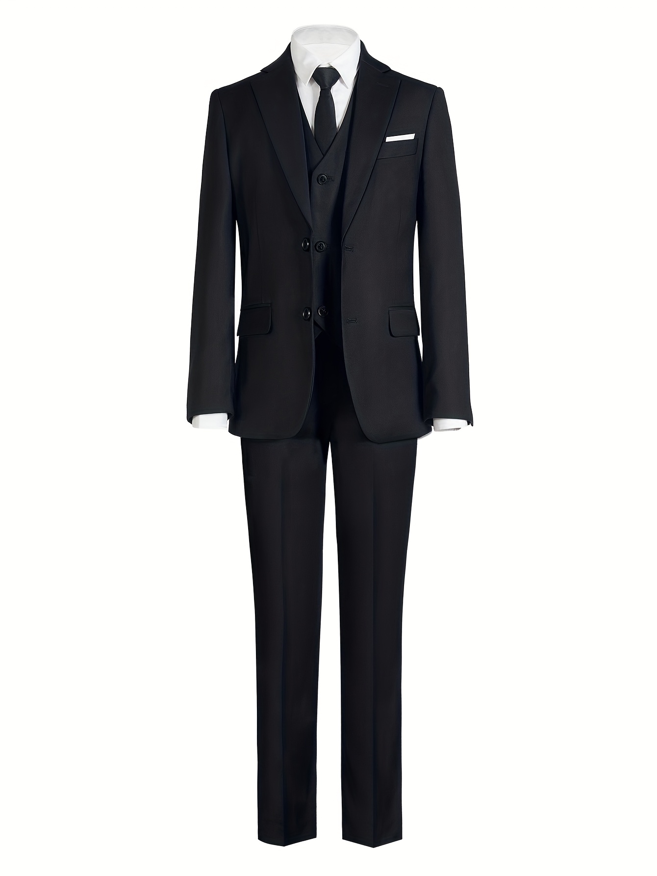 Navy Boys Suits Slim Fit 5 Piece Formal Dresswear Suit for Kids Tuxedo Wedding Set Boy Dress with Vest Pants Tie and Bow Tie