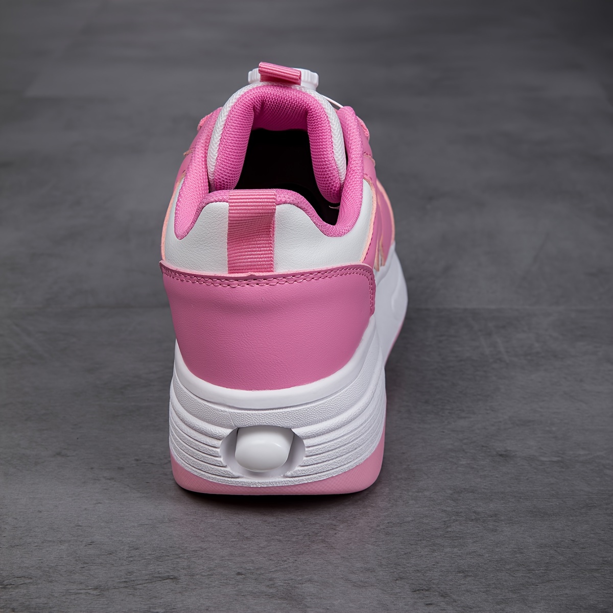 & Pink Roller Skate Sneakers with Detachable Wheels & Rotating Buckle Closure - All-Season Comfort, Star Pattern Design, Low-Top TPR Sole & EVA Cushioning - Durable -like Upper for Training, Sports, Outdoor Play - Ideal Birth