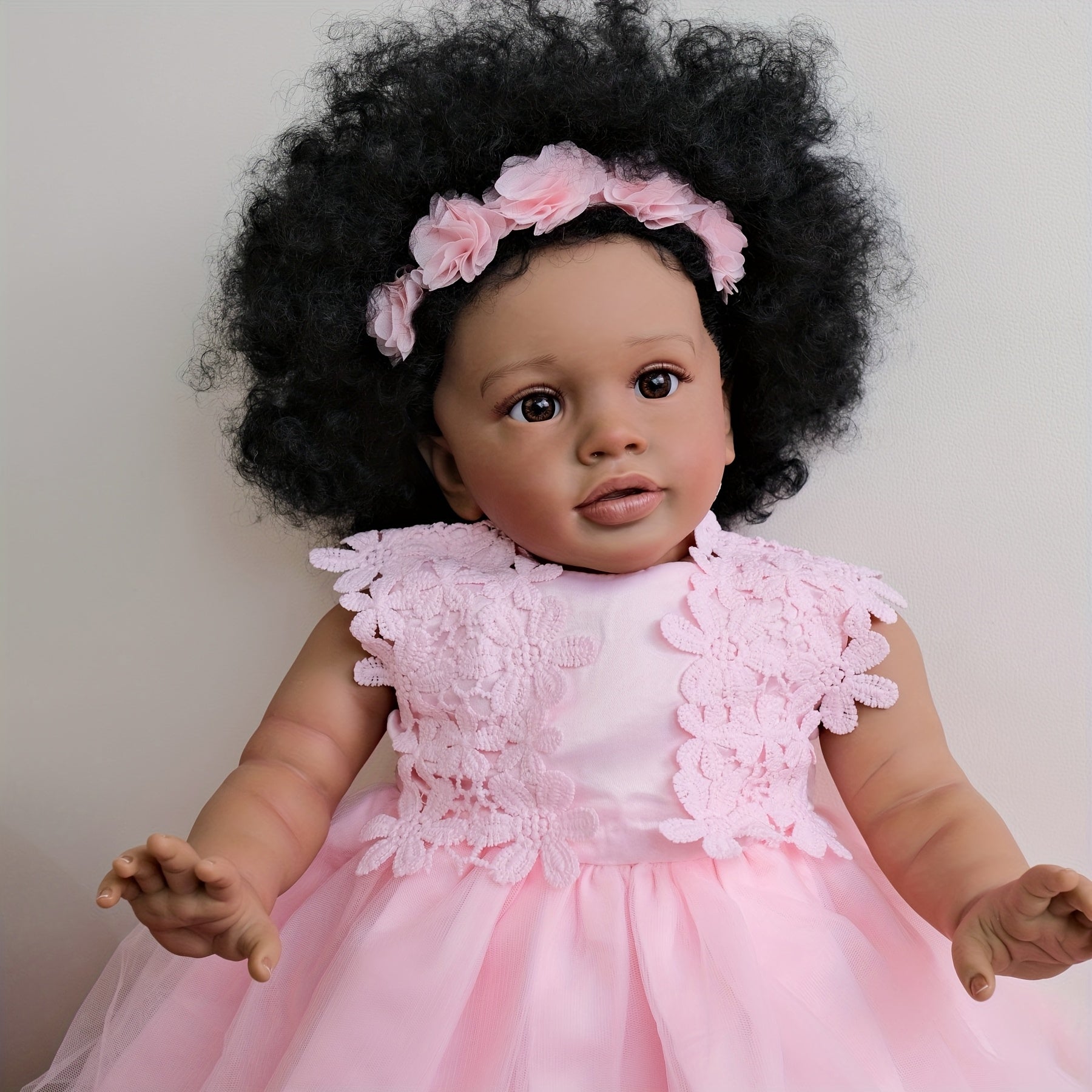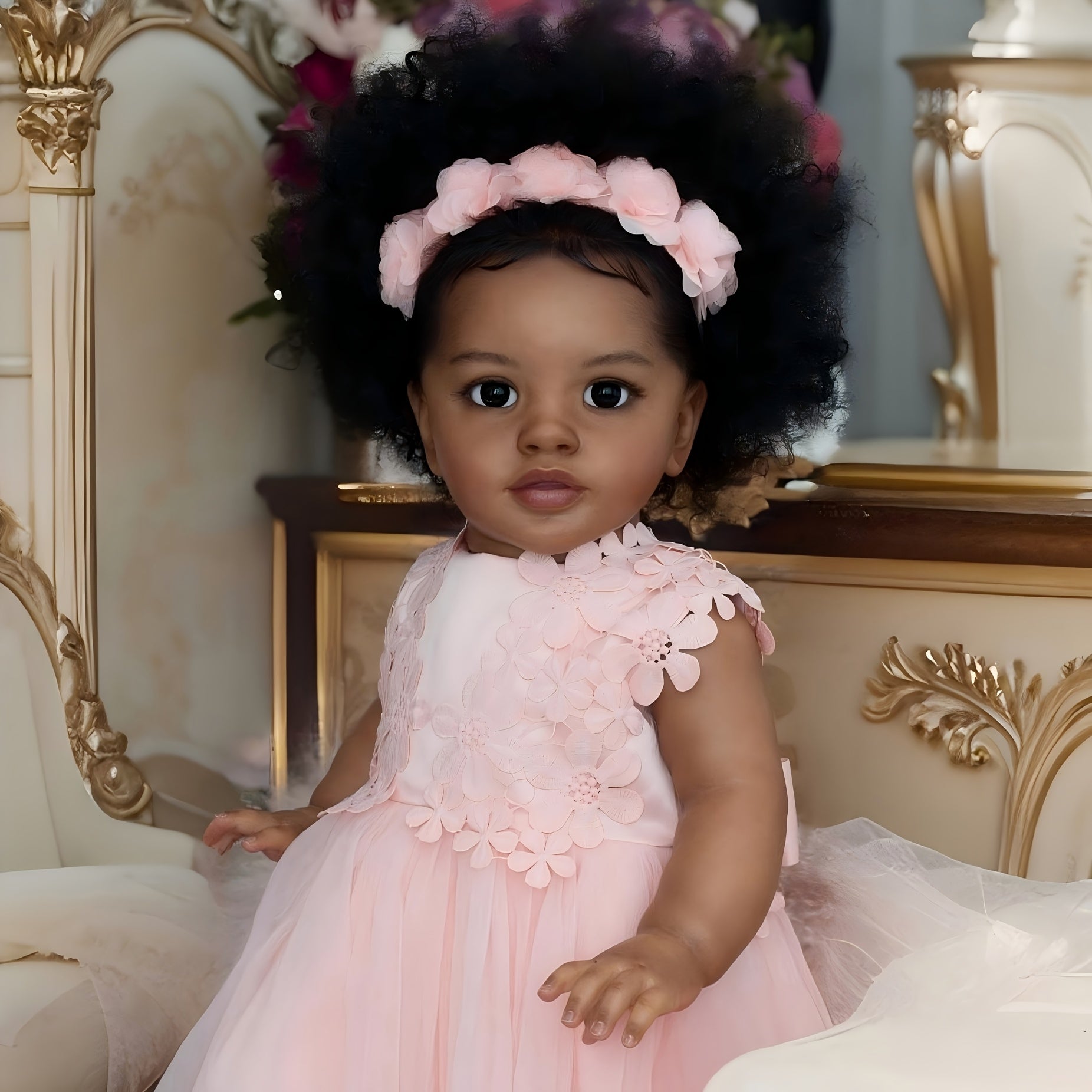 [Realistic Reborn Baby Doll] 26" African American Black Realistic Reborn Baby Doll with Rooted Curly Hair, Expressive Eyes & Lifelike Light Beige - Newborn Girl Doll with Outfit & Diaper - Ideal Gift for Girls Age 3+ (Vinyl &