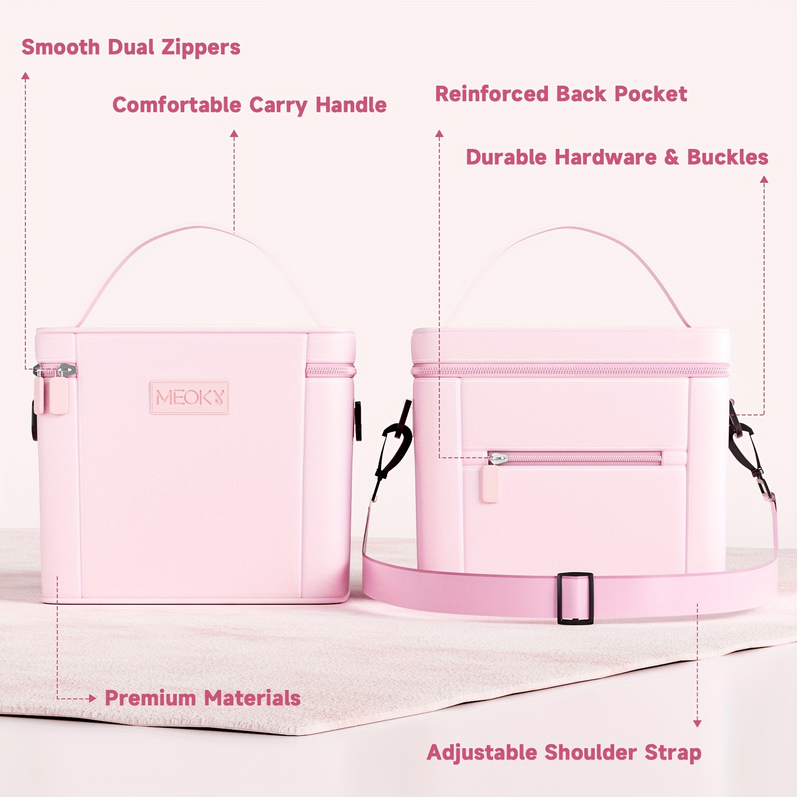 [Stylish, MEOKY Lunch Bag] Stylish, Durable Polyester, MEOKY Large Capacity Insulated Lunch Bag - Pink, Keeps Food Fresh, Hand Washable, Rectangular Design for Easy Portion Control, Perfect for Picnics, Office, or School, Lun