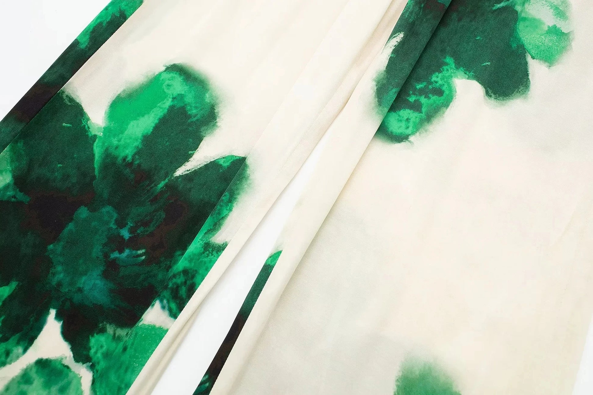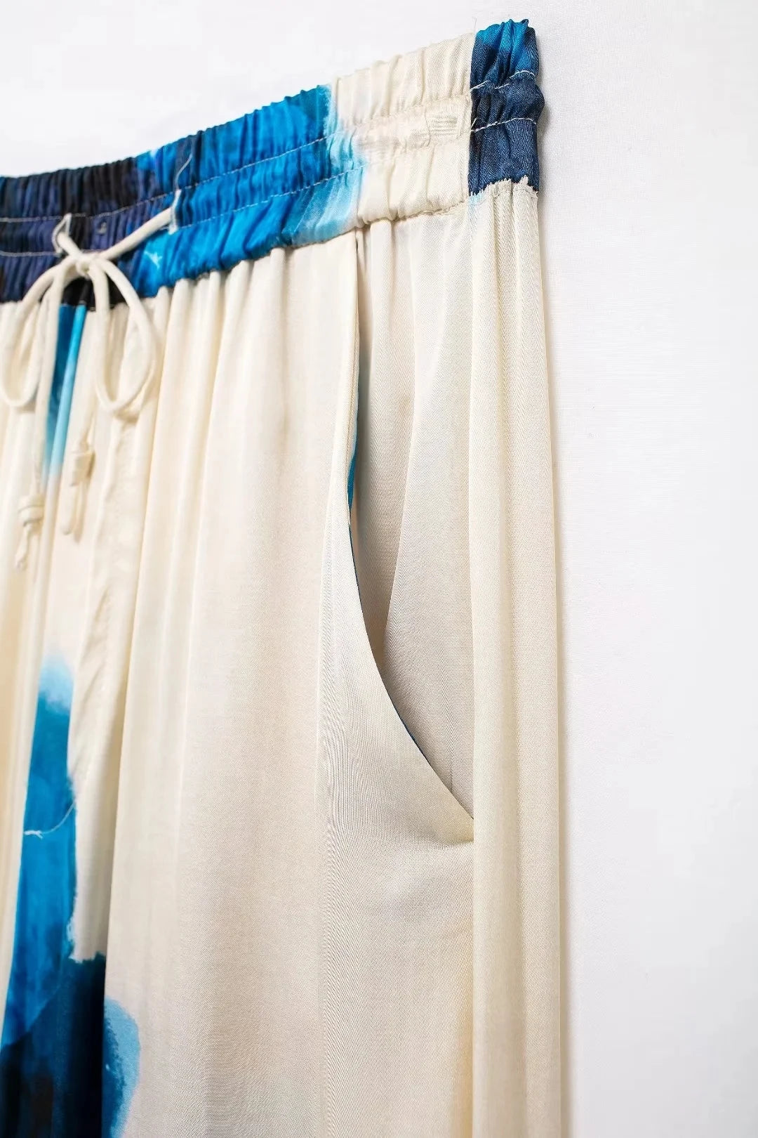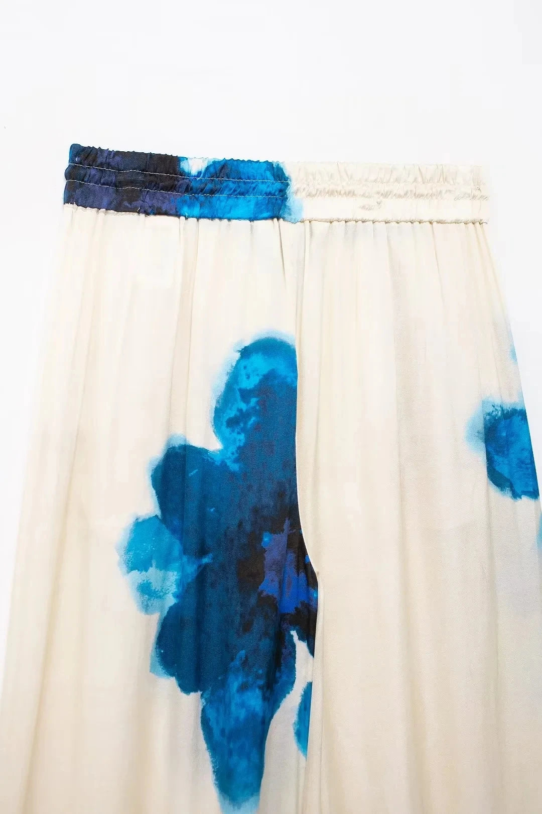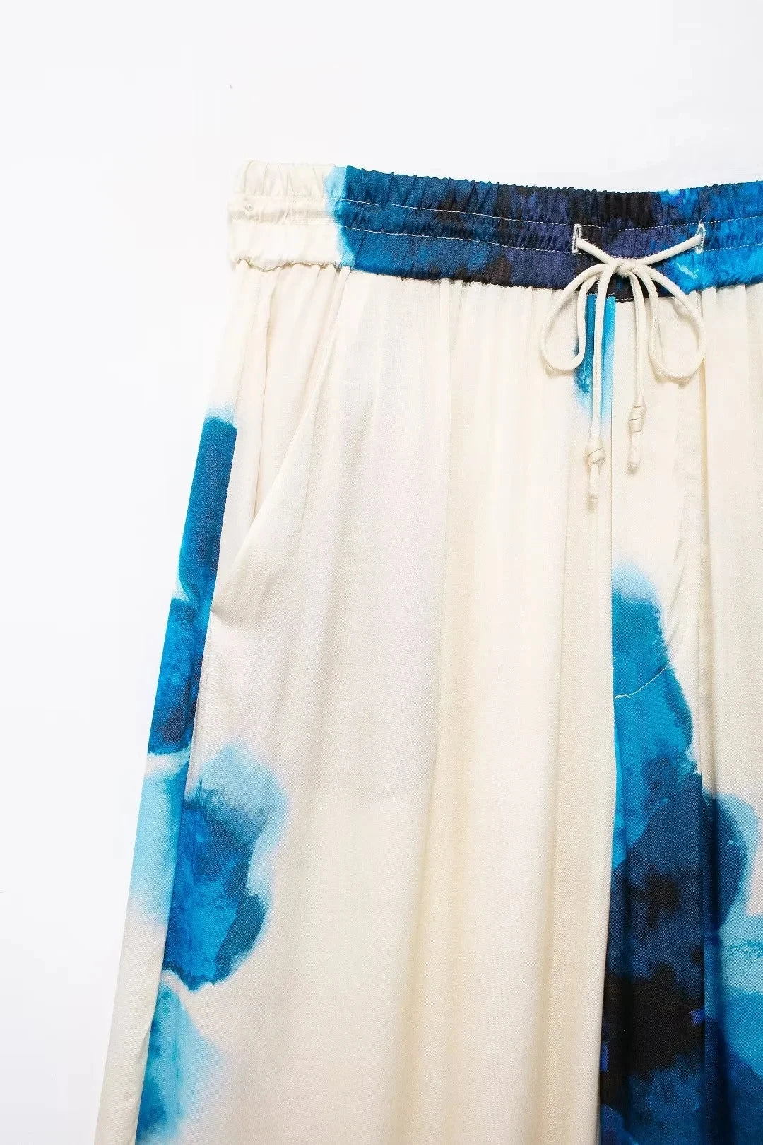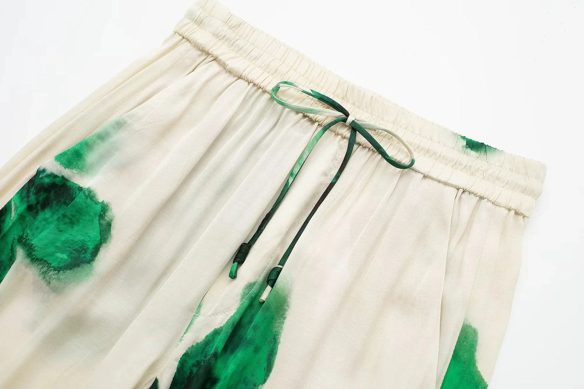 TRAFZA Women Fashion Floral Print Wide Leg Pants Loose Casual High Waist Drawstring Trousers Elegant Woman High Street Pant