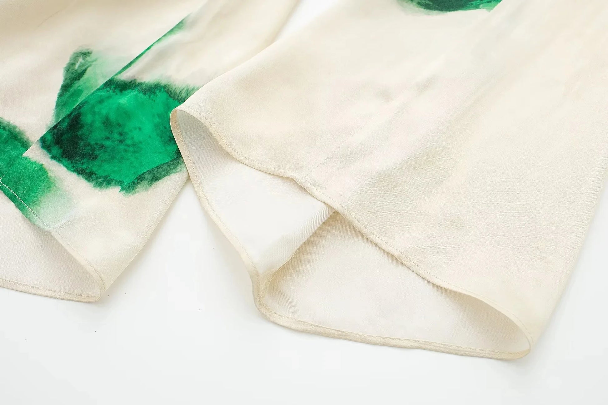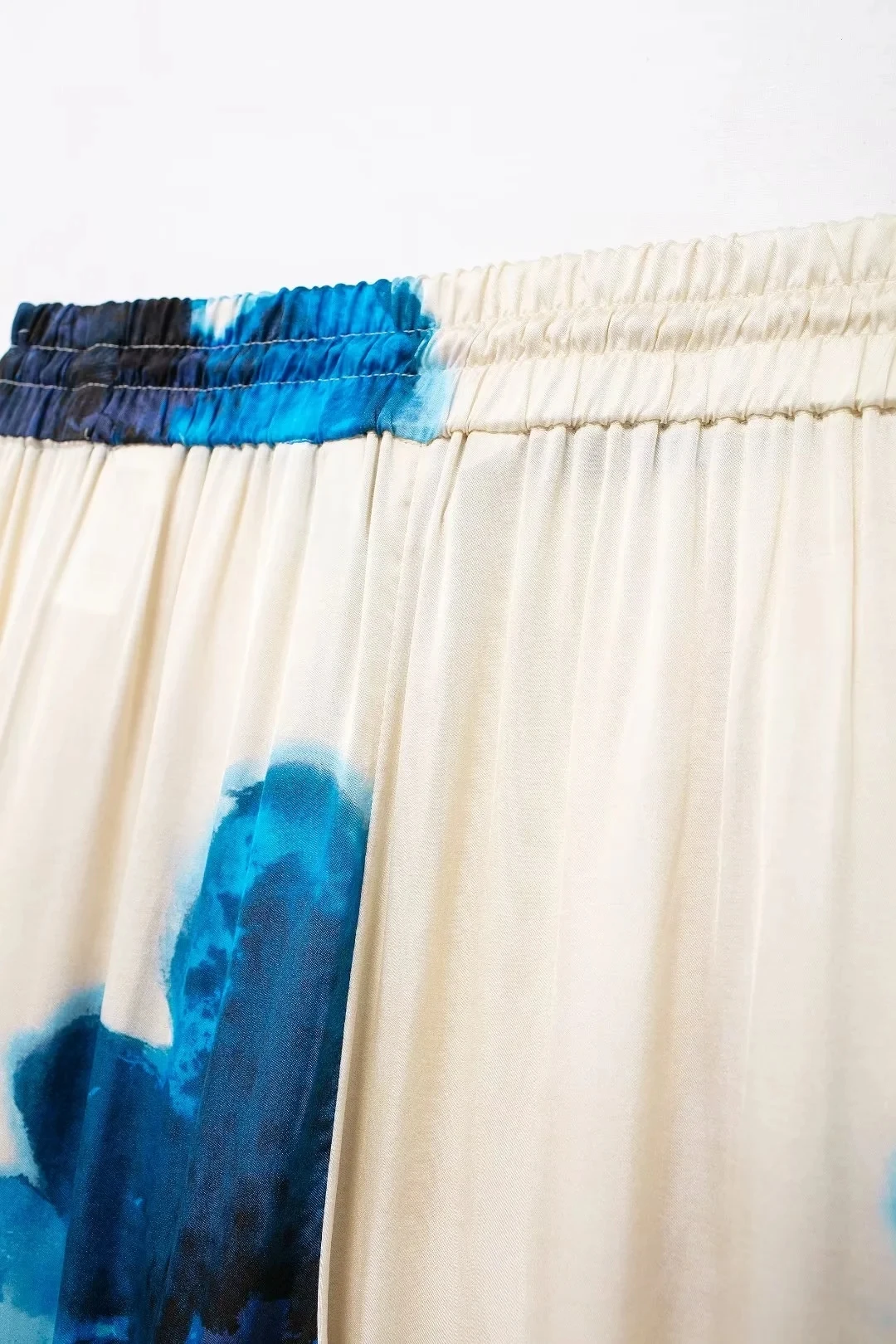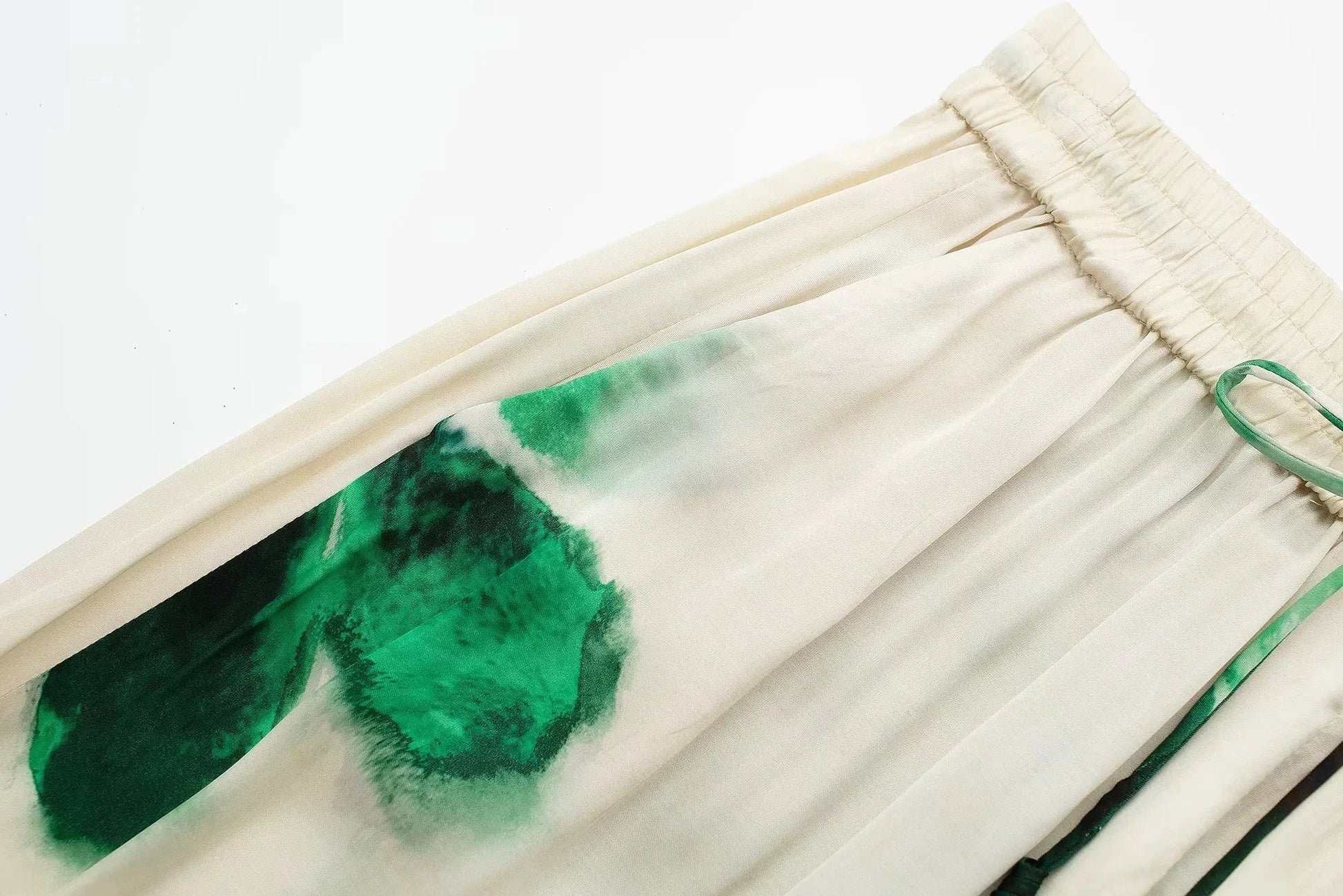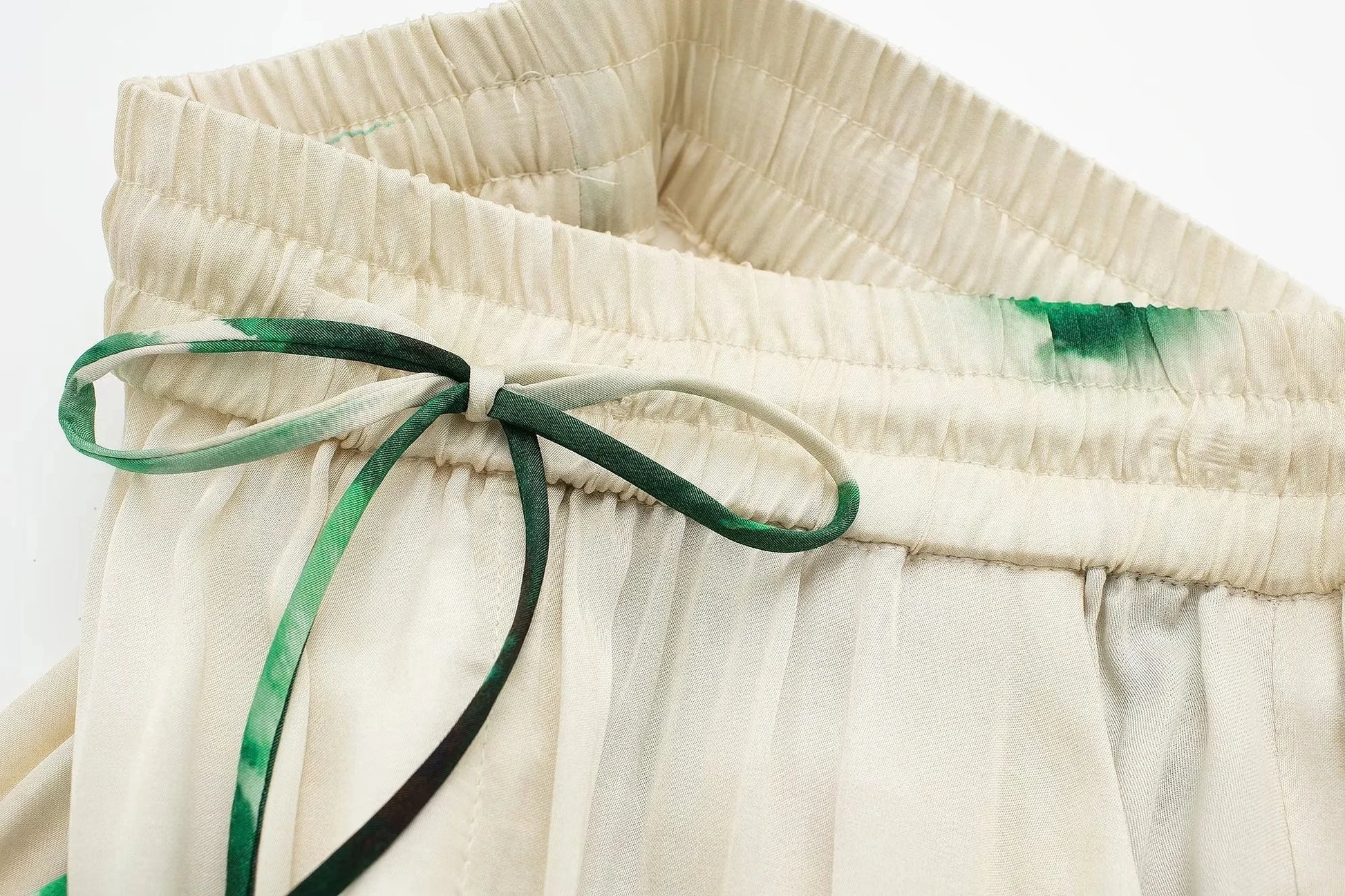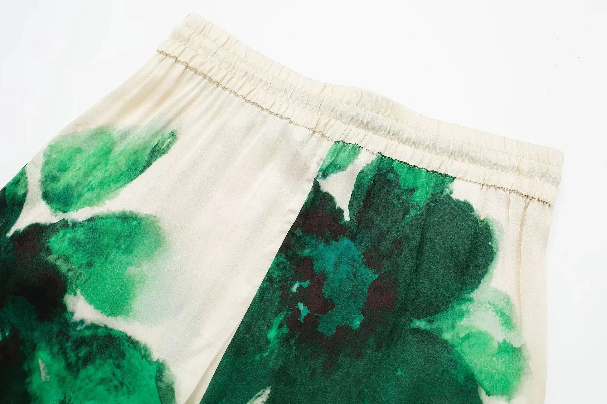 TRAFZA Women Fashion Floral Print Wide Leg Pants Loose Casual High Waist Drawstring Trousers Elegant Woman High Street Pant