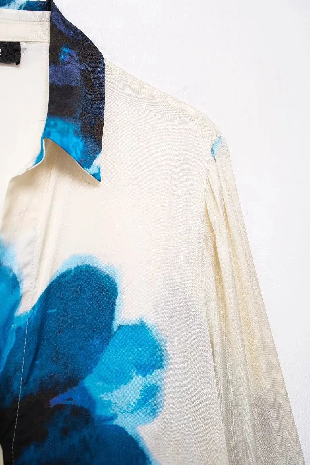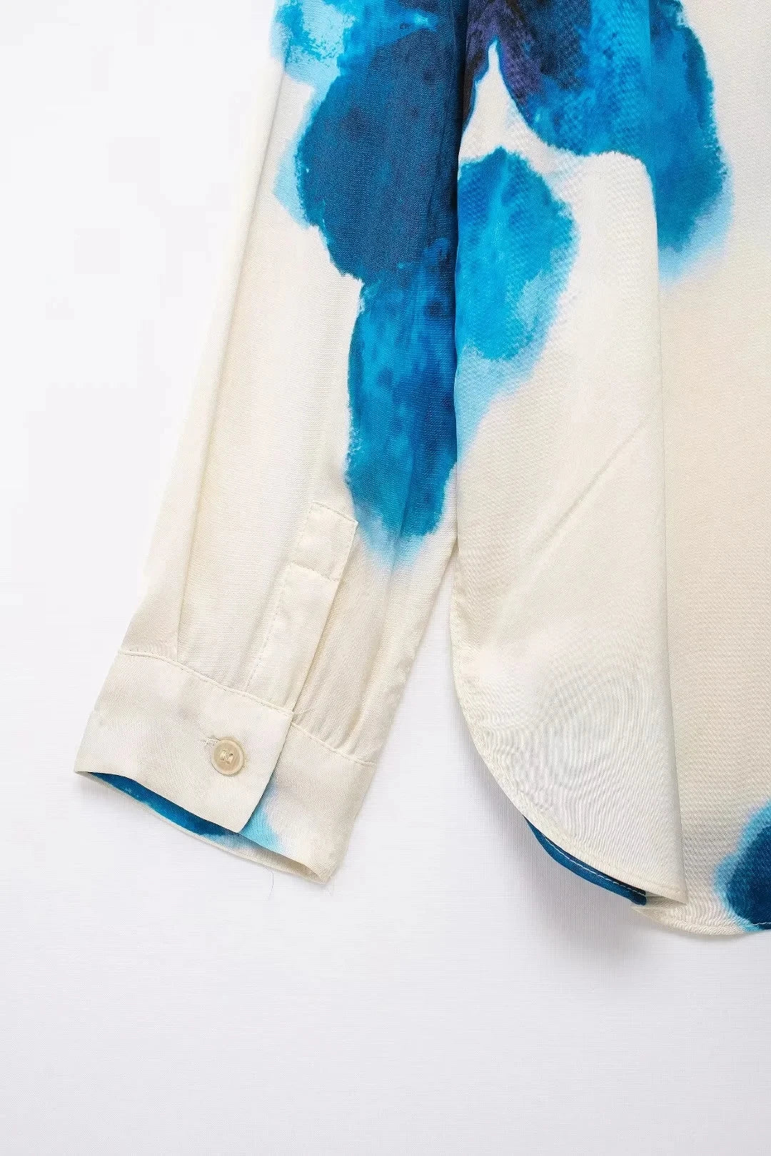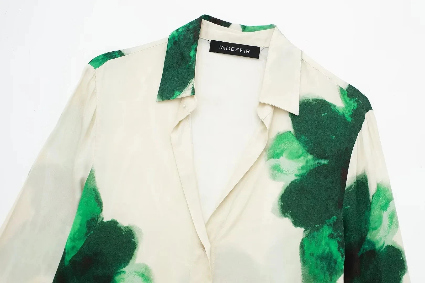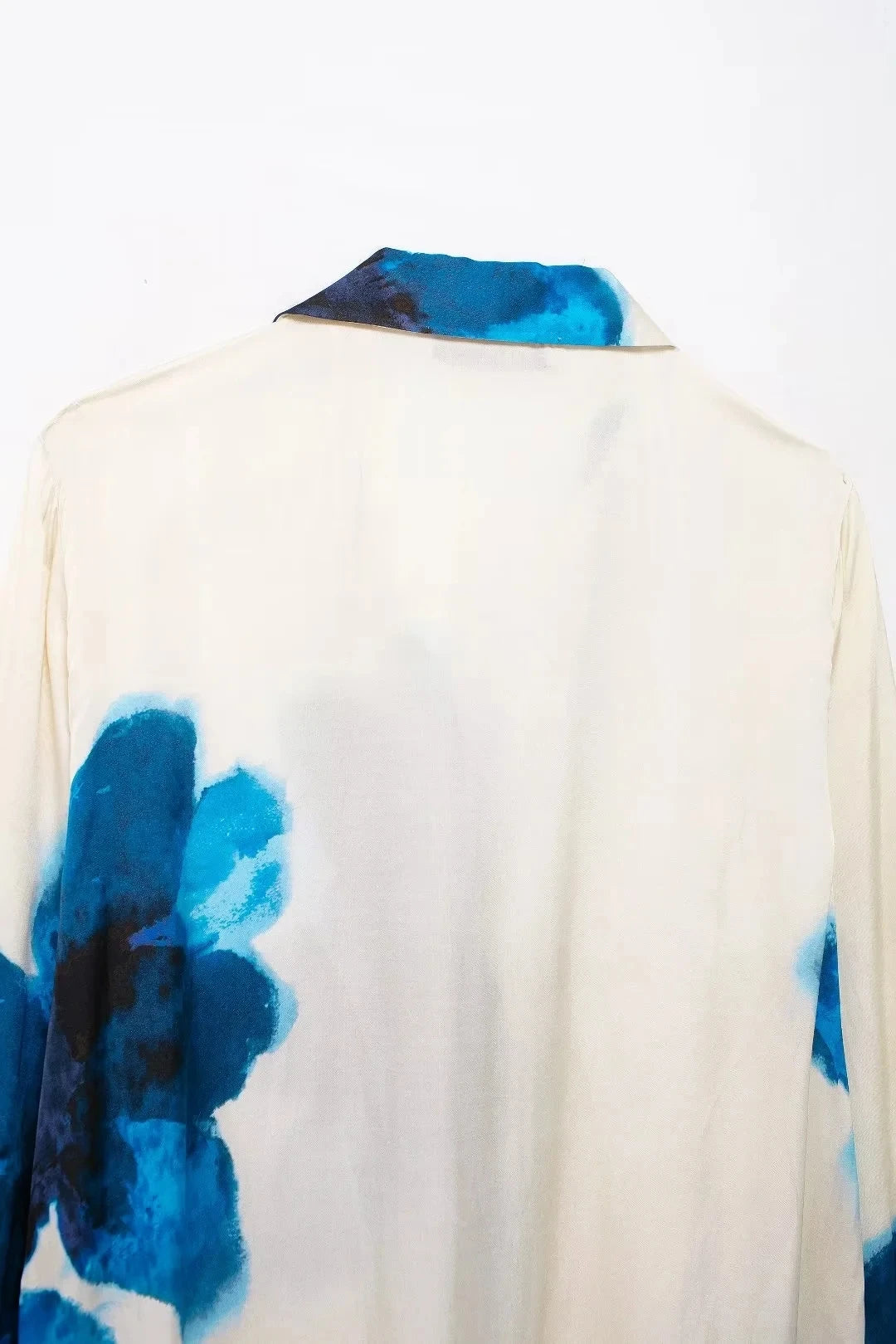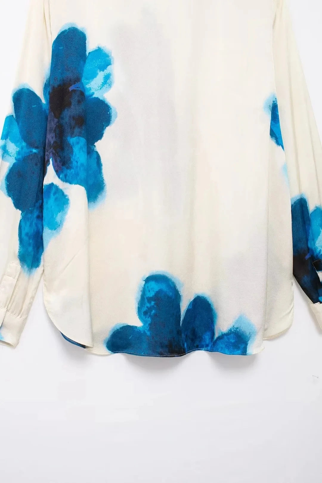 TRAFZA Women Fashion Floral Print Wide Leg Pants Loose Casual High Waist Drawstring Trousers Elegant Woman High Street Pant