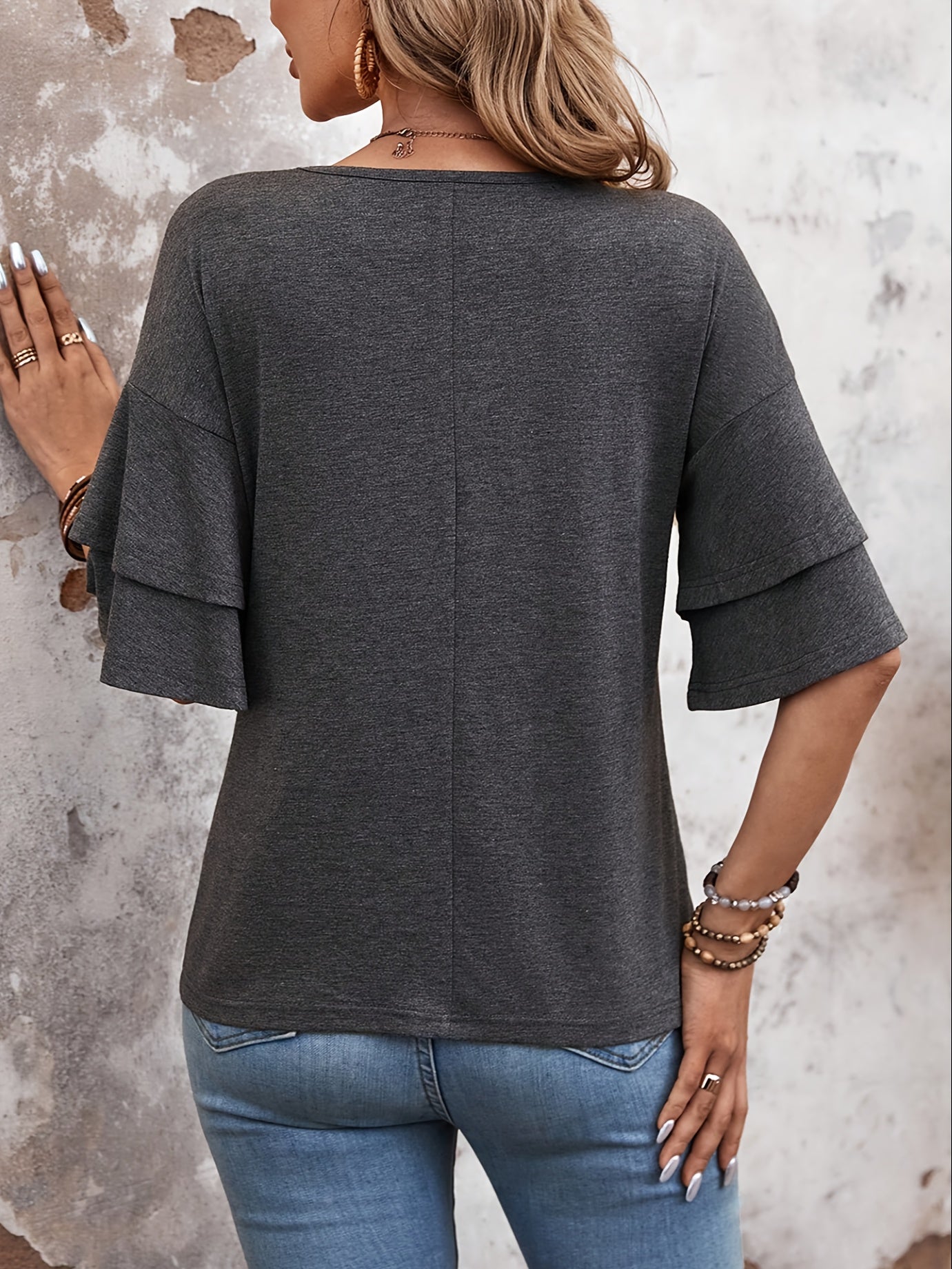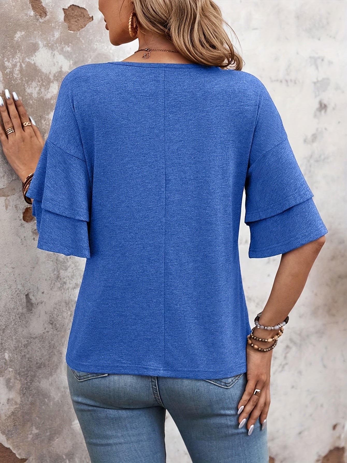 Women'S Stylish Double-Layer Ruffled Short-Sleeve T-Shirt